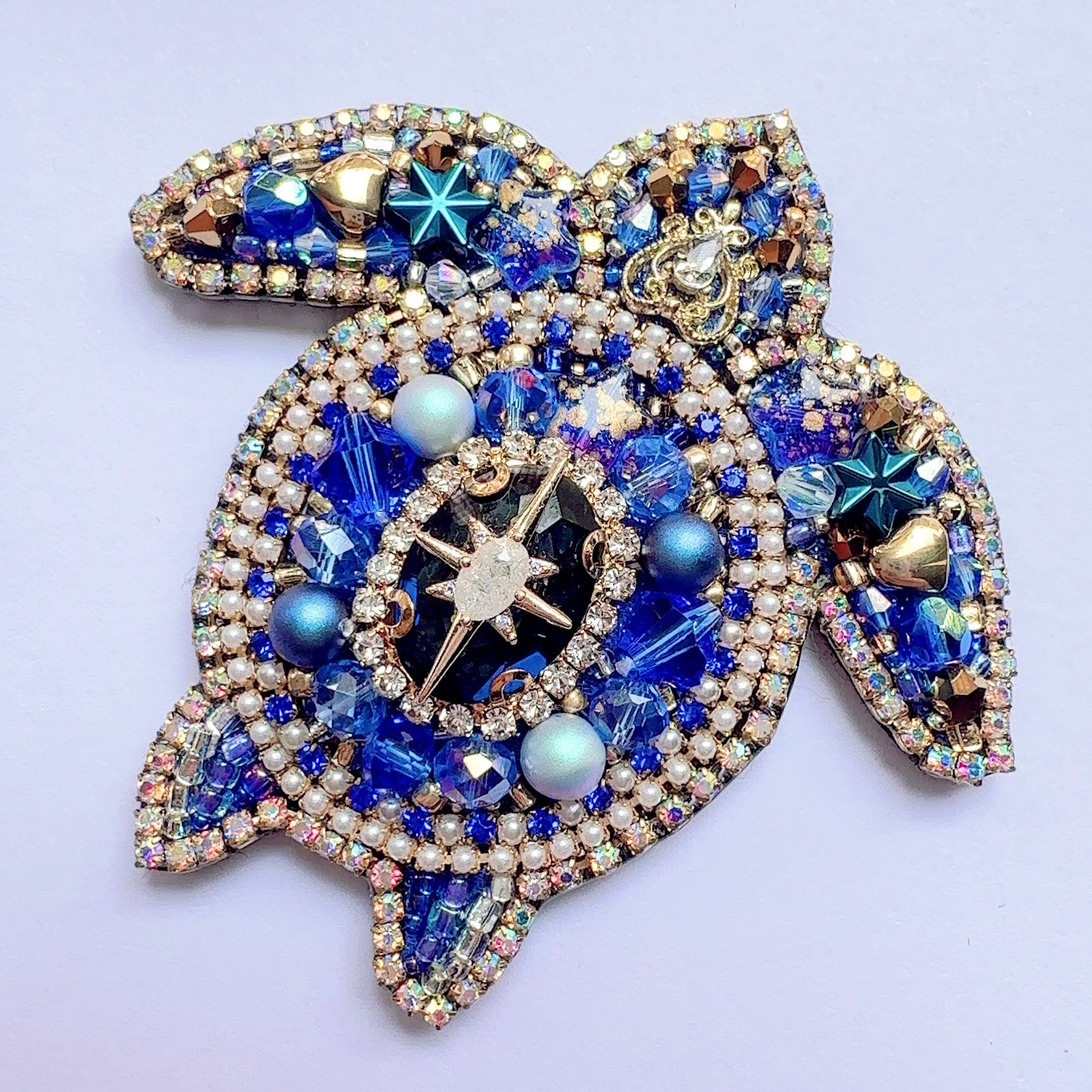 ビーズ刺繍のブローチ・ネックレス・バッグチャームの3wayです。