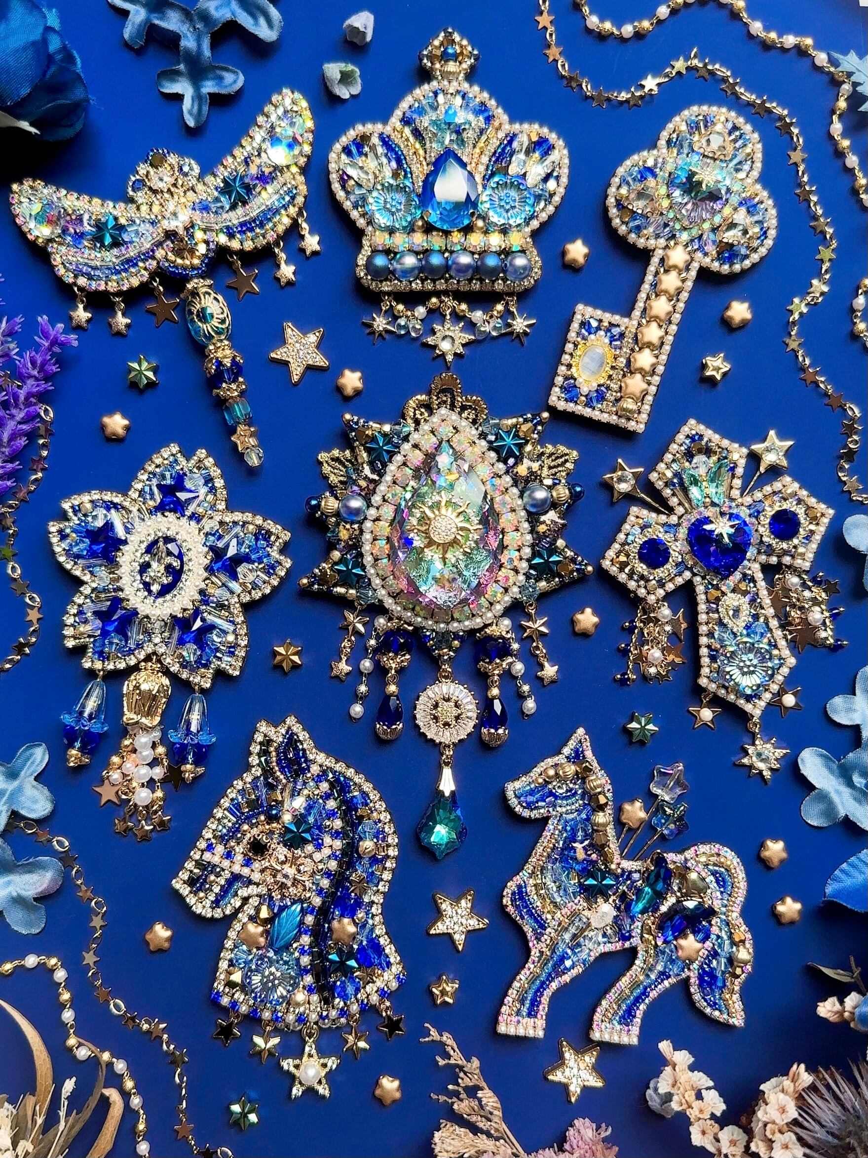 ビーズ刺繍のブローチ・ネックレス・バッグチャームの3wayです。