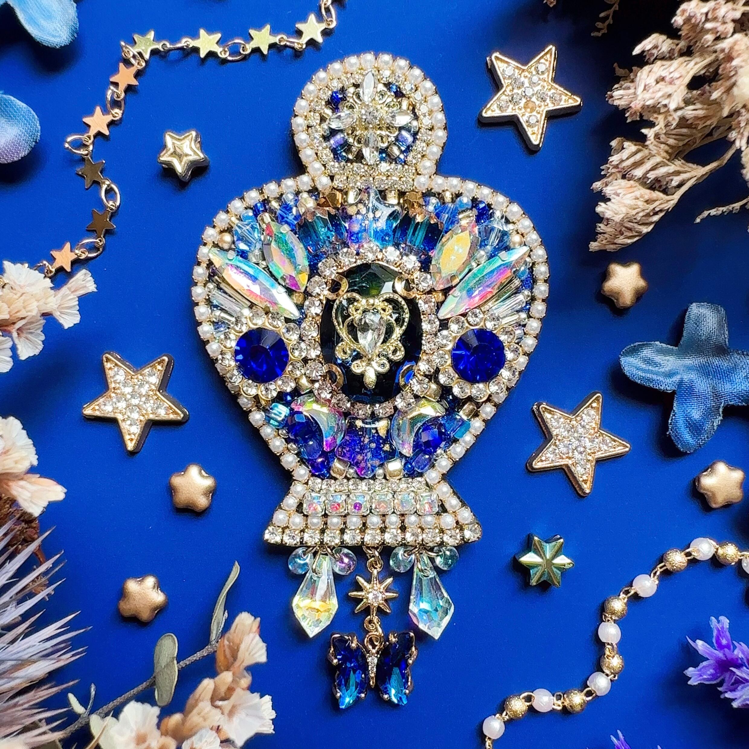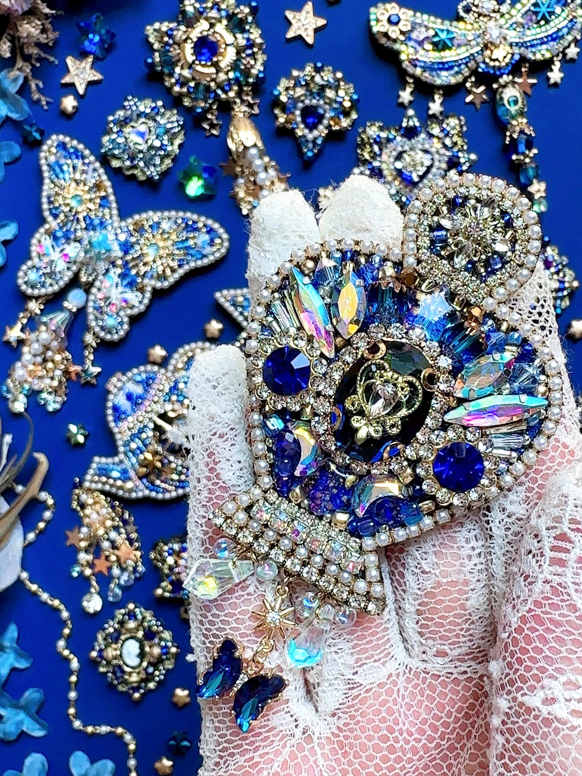 ビーズ刺繍のブローチ・ネックレス・バッグチャームの3wayです。