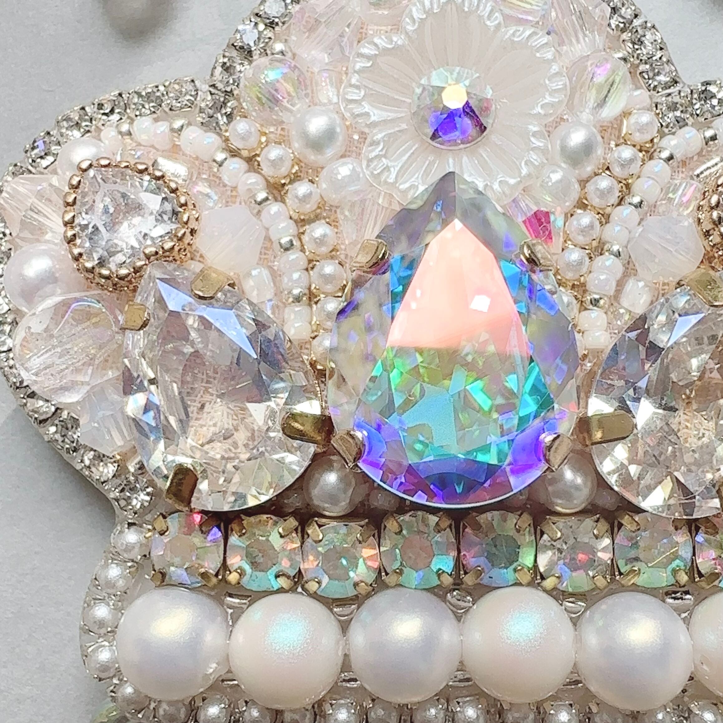 ビーズ刺繍のブローチ・ネックレス・バッグチャームの3wayです。