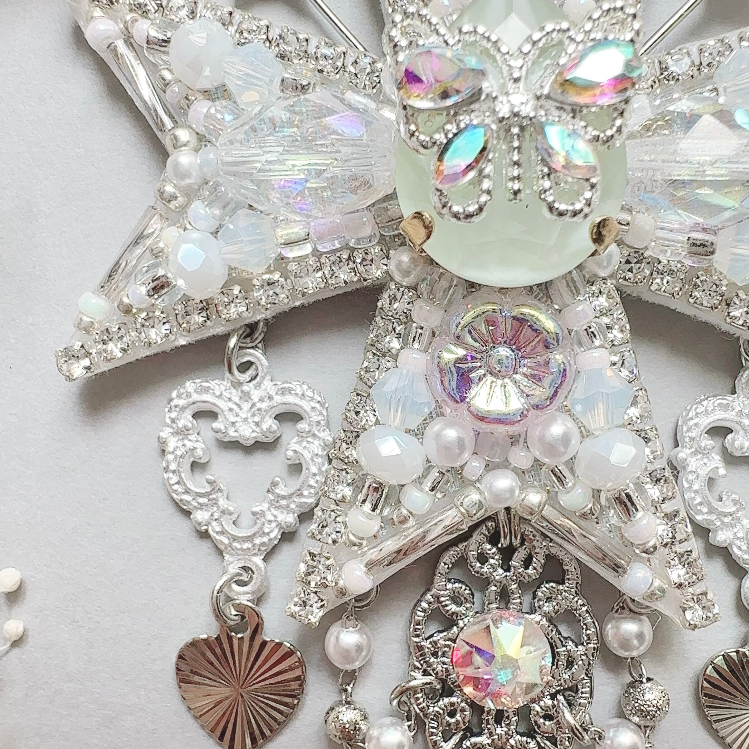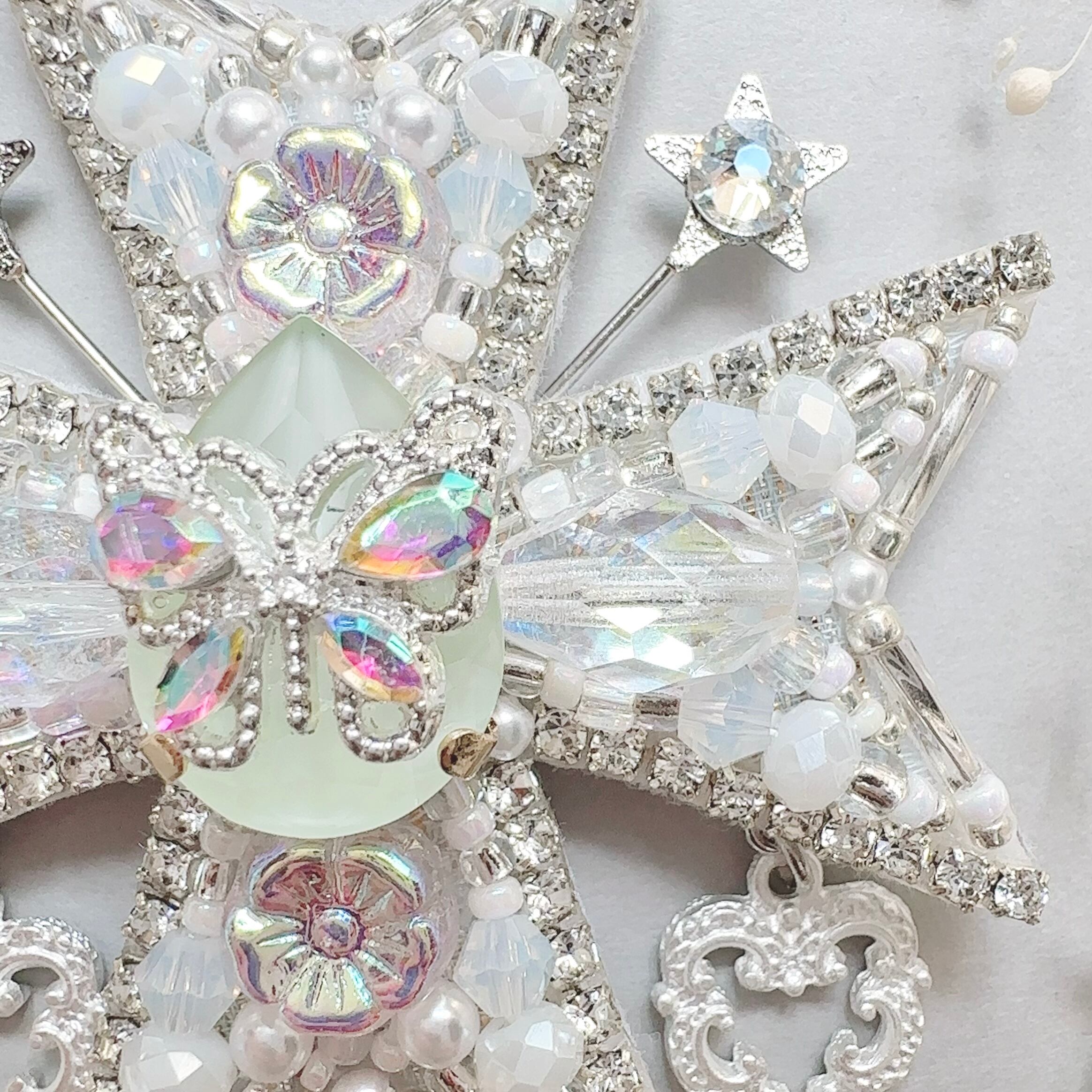 ビーズ刺繍のブローチ・ネックレス・バッグチャームの3wayです。