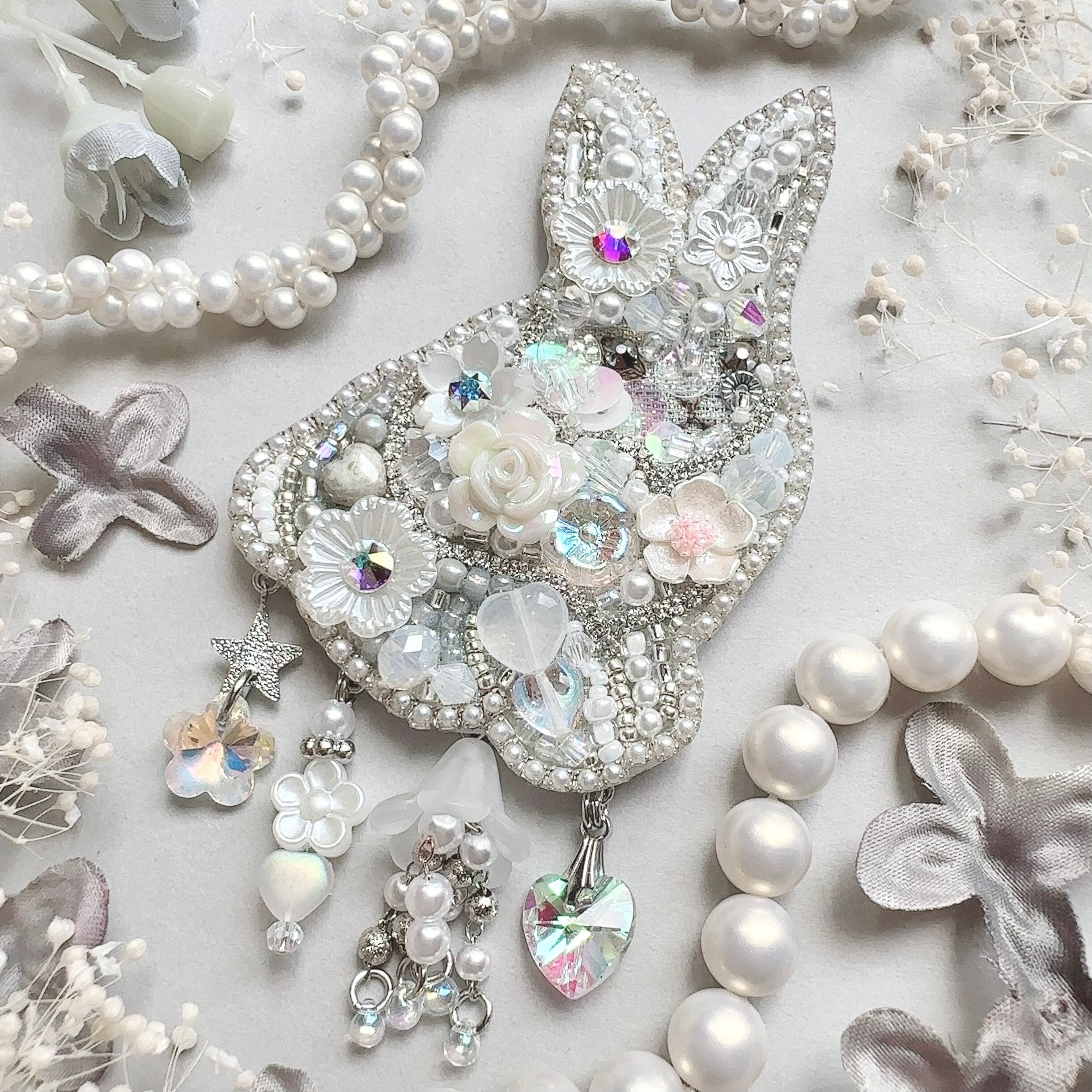 ビーズ刺繍のブローチ・ネックレス・バッグチャームの3wayです。