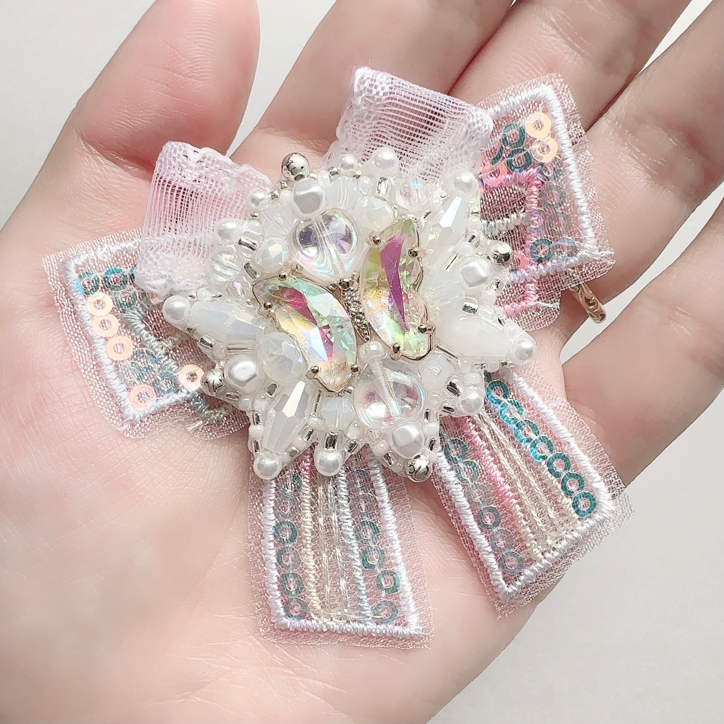ビーズ刺繍のミニブローチ・ネックレス・バッグチャームの3wayです。