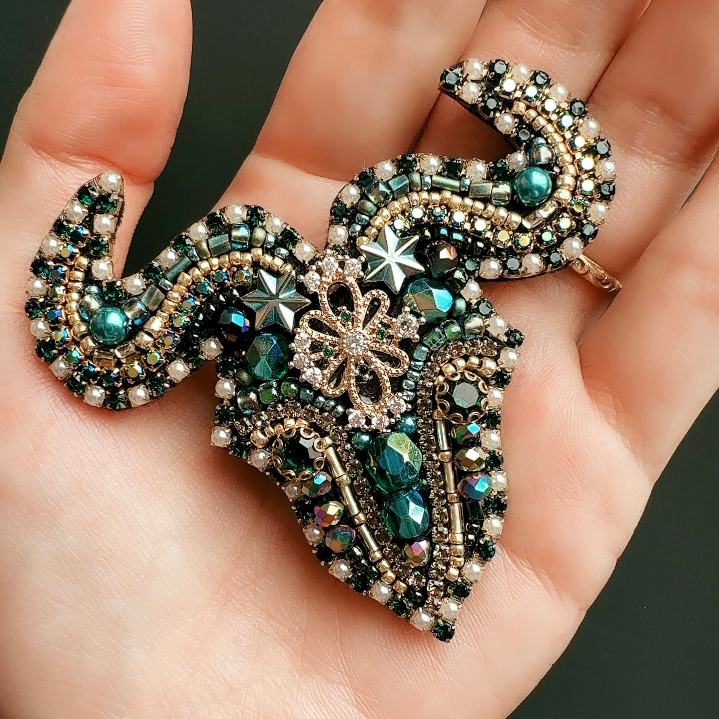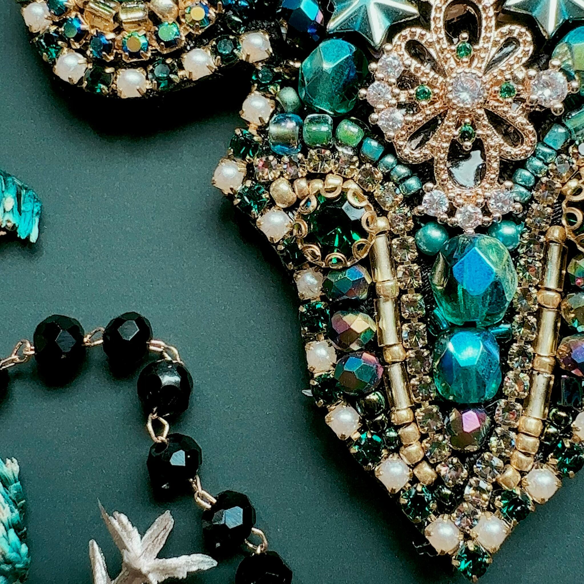 ビーズ刺繍のブローチ・ネックレス・バッグチャームの3wayです。