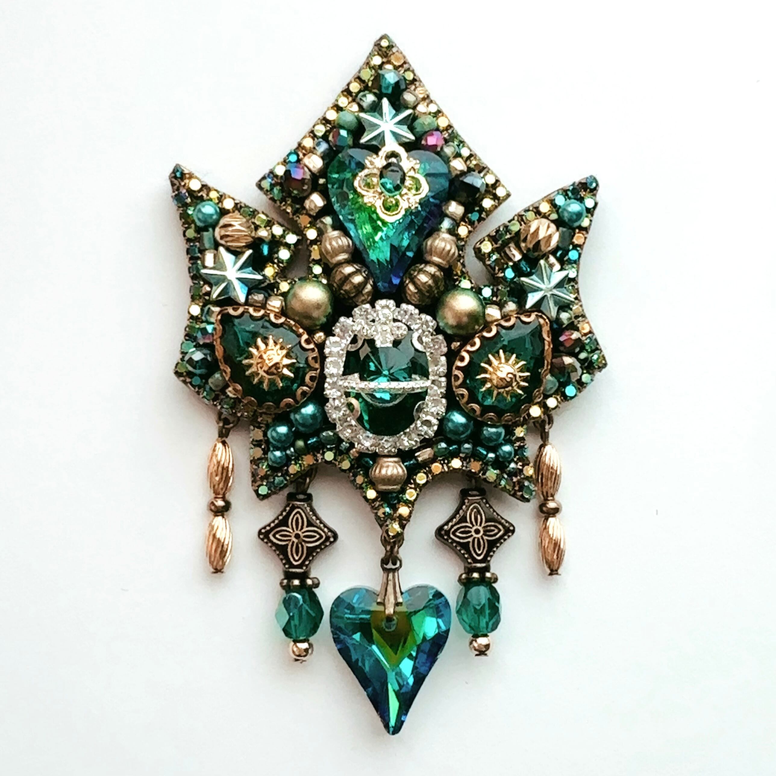 ビーズ刺繍のブローチ・ネックレス・バッグチャームの3wayです。