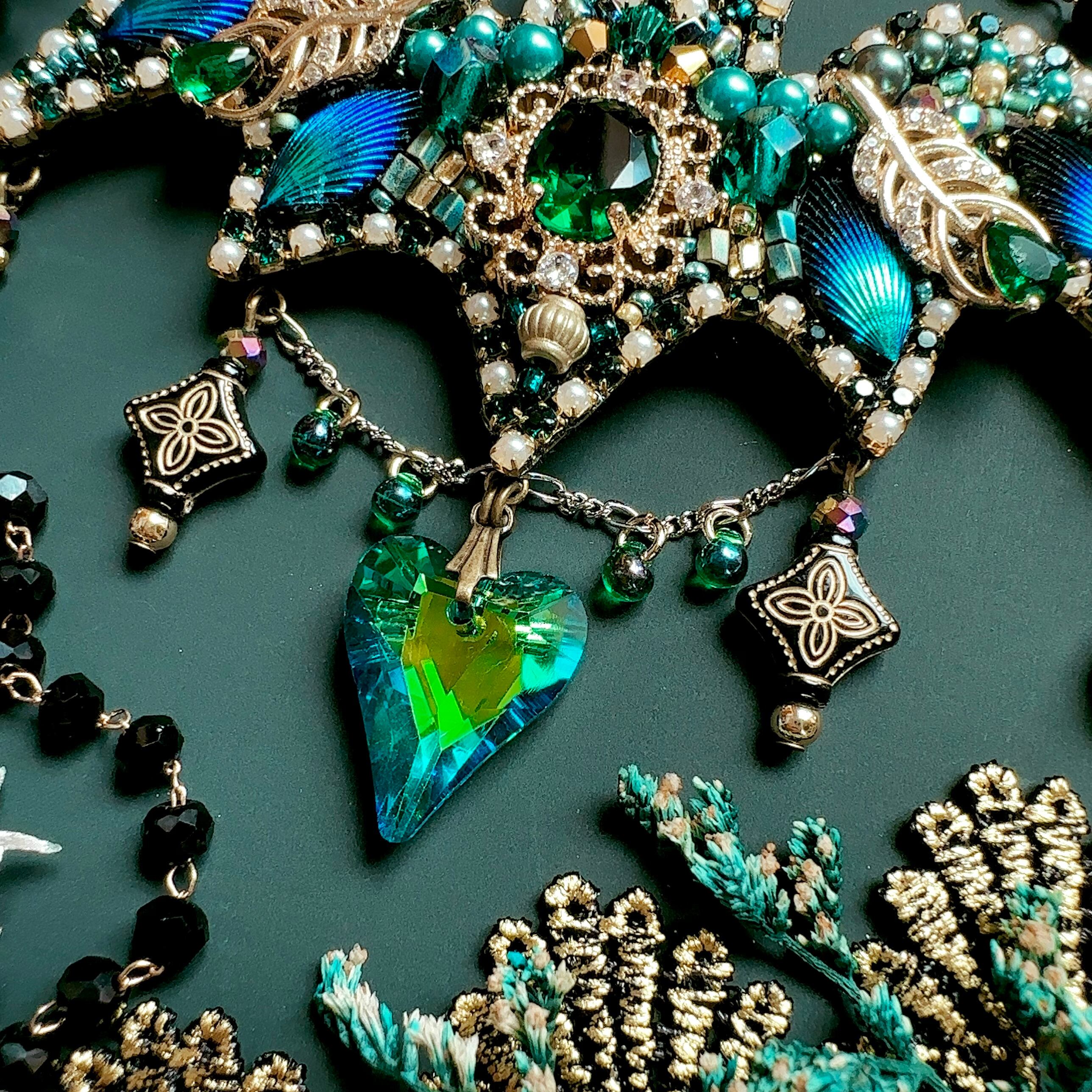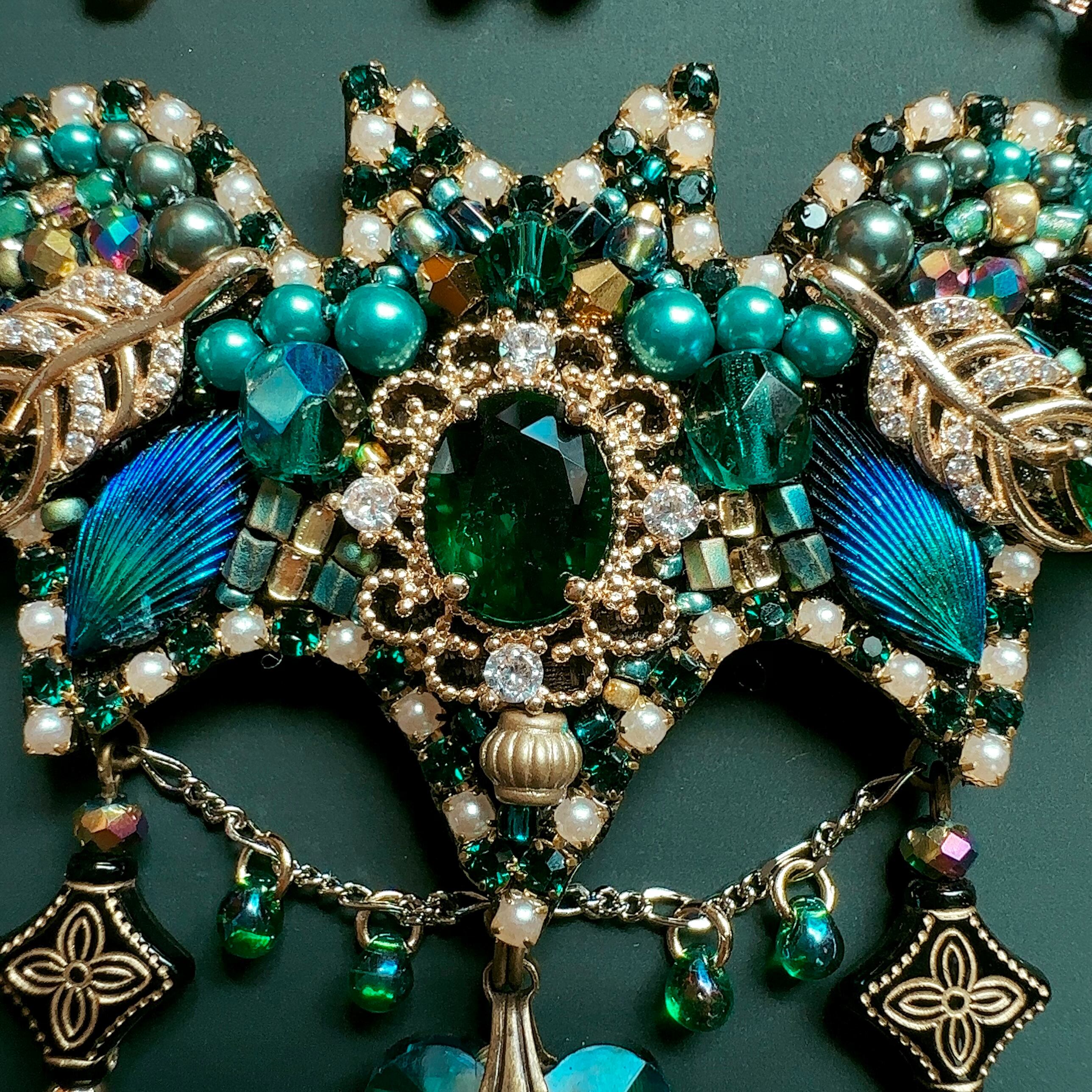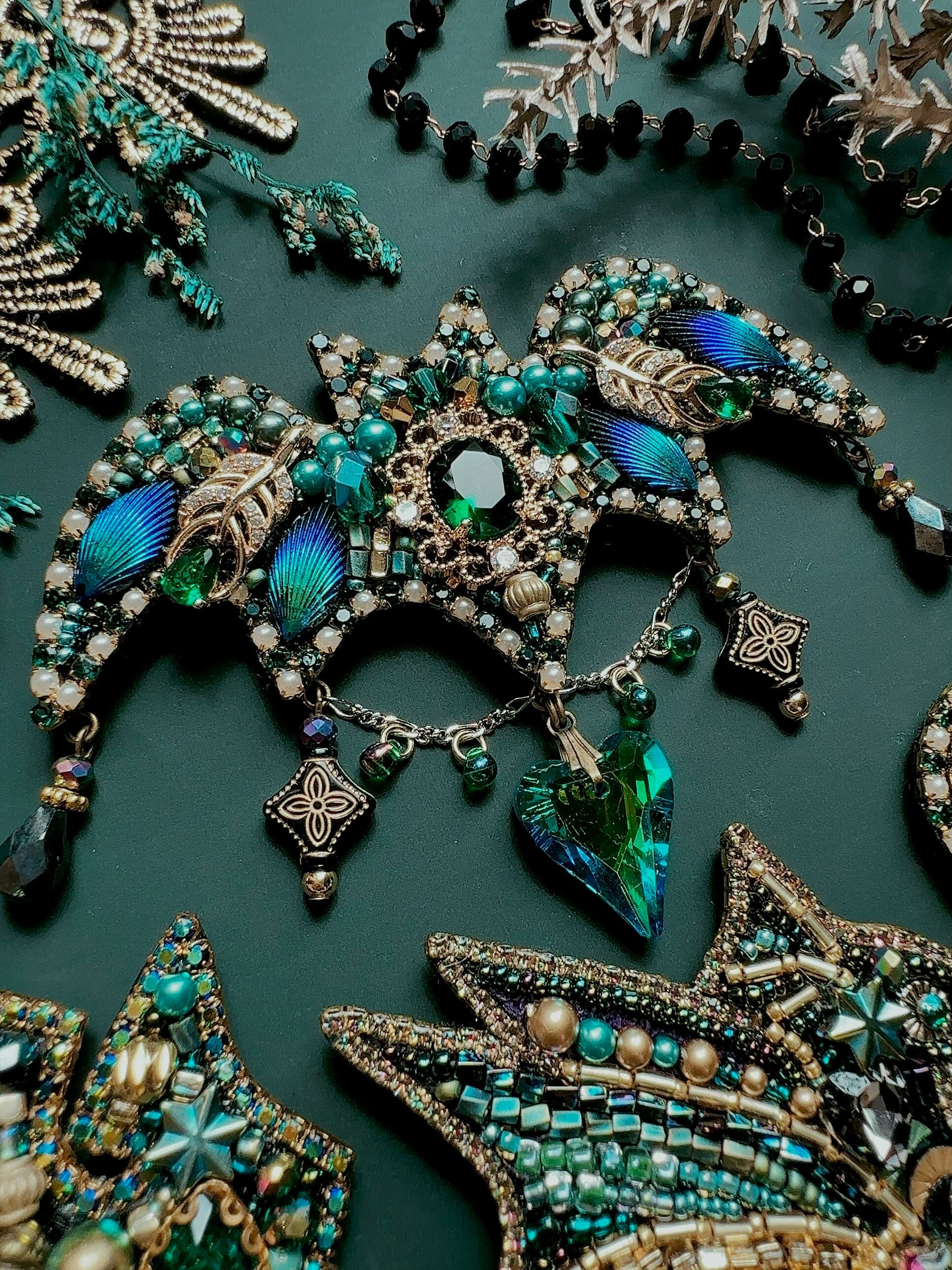 ビーズ刺繍のブローチ・ネックレス・バッグチャームの3wayです。