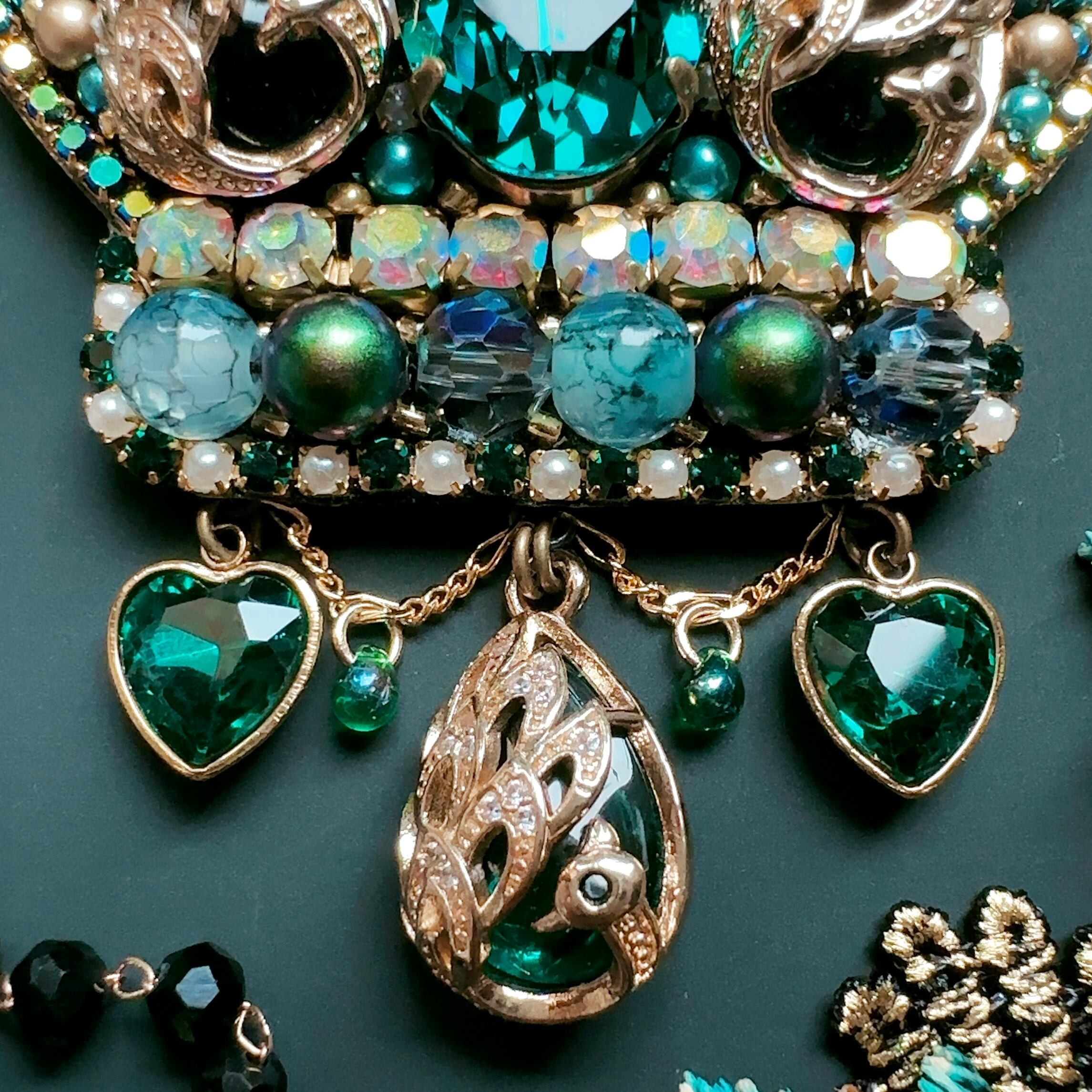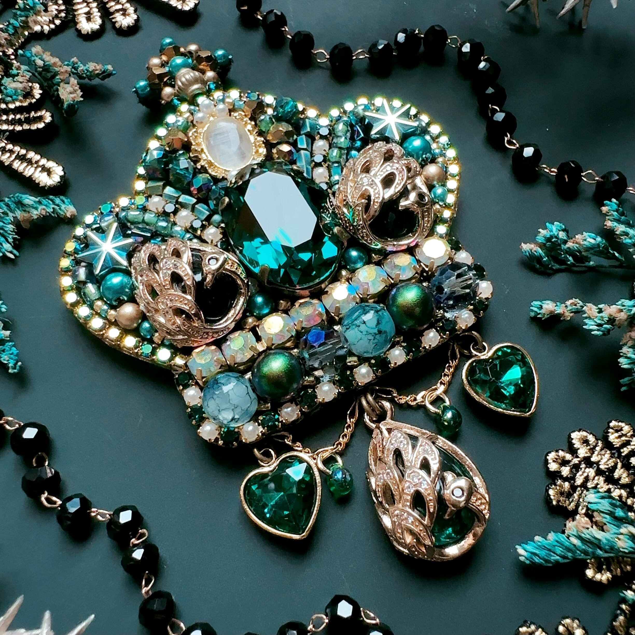 ビーズ刺繍のブローチ・ネックレス・バッグチャームの3wayです。