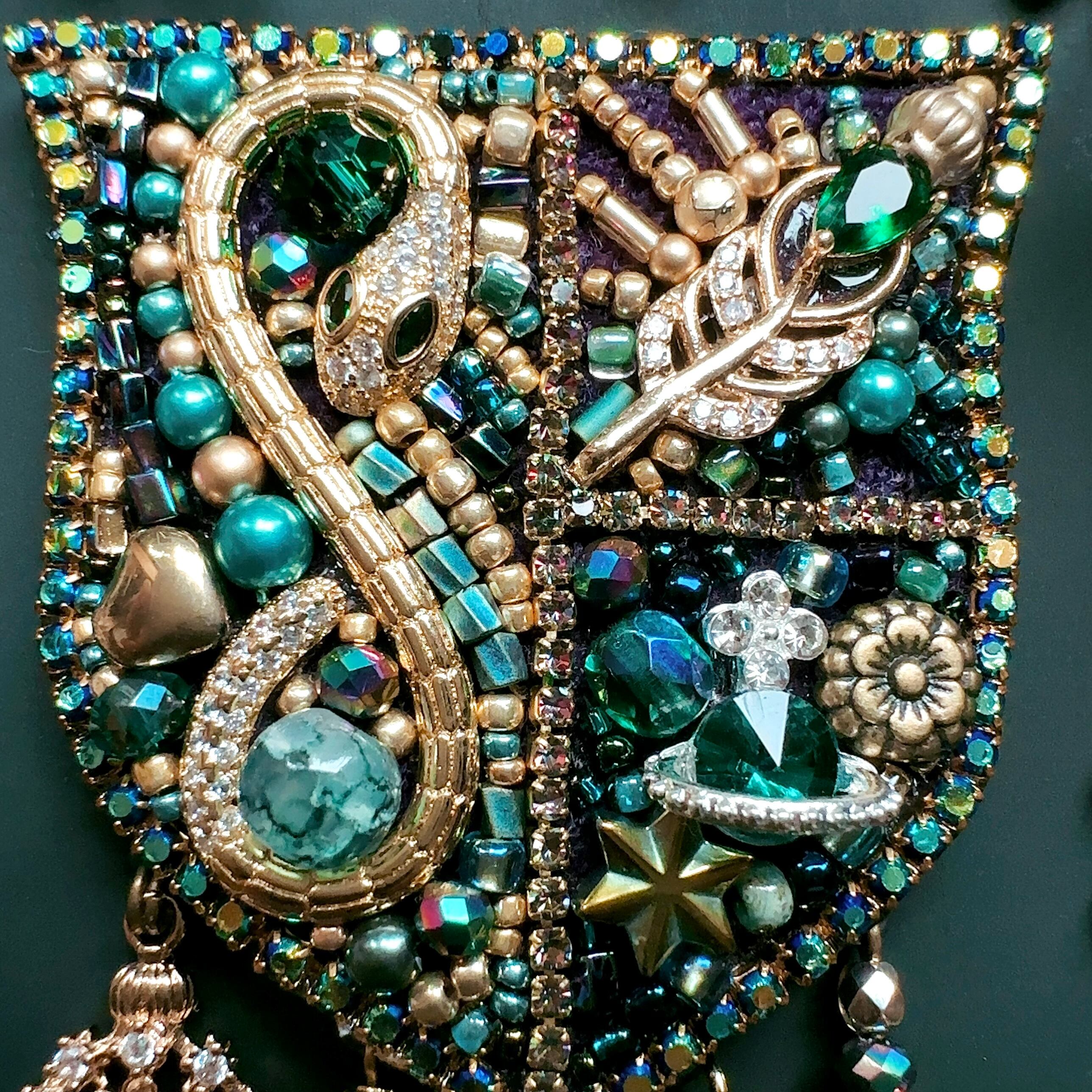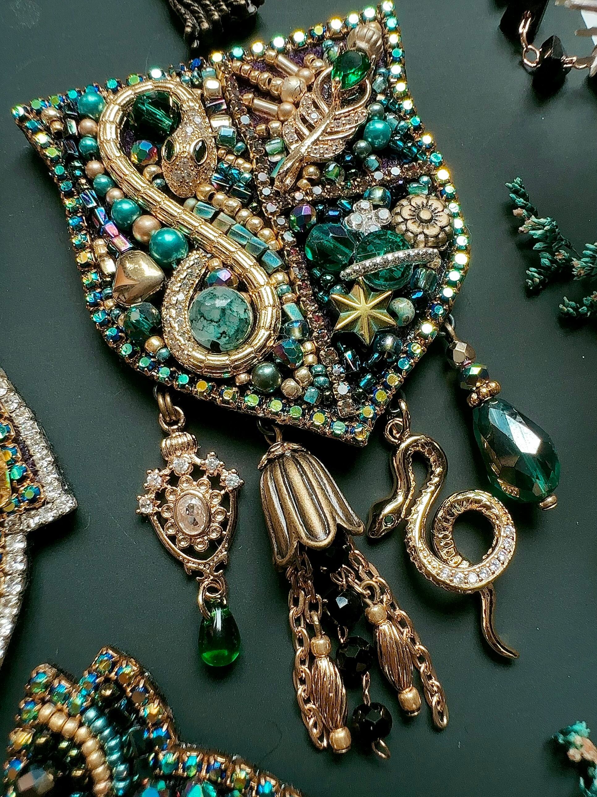 ビーズ刺繍のブローチ・ネックレス・バッグチャームの3wayです。