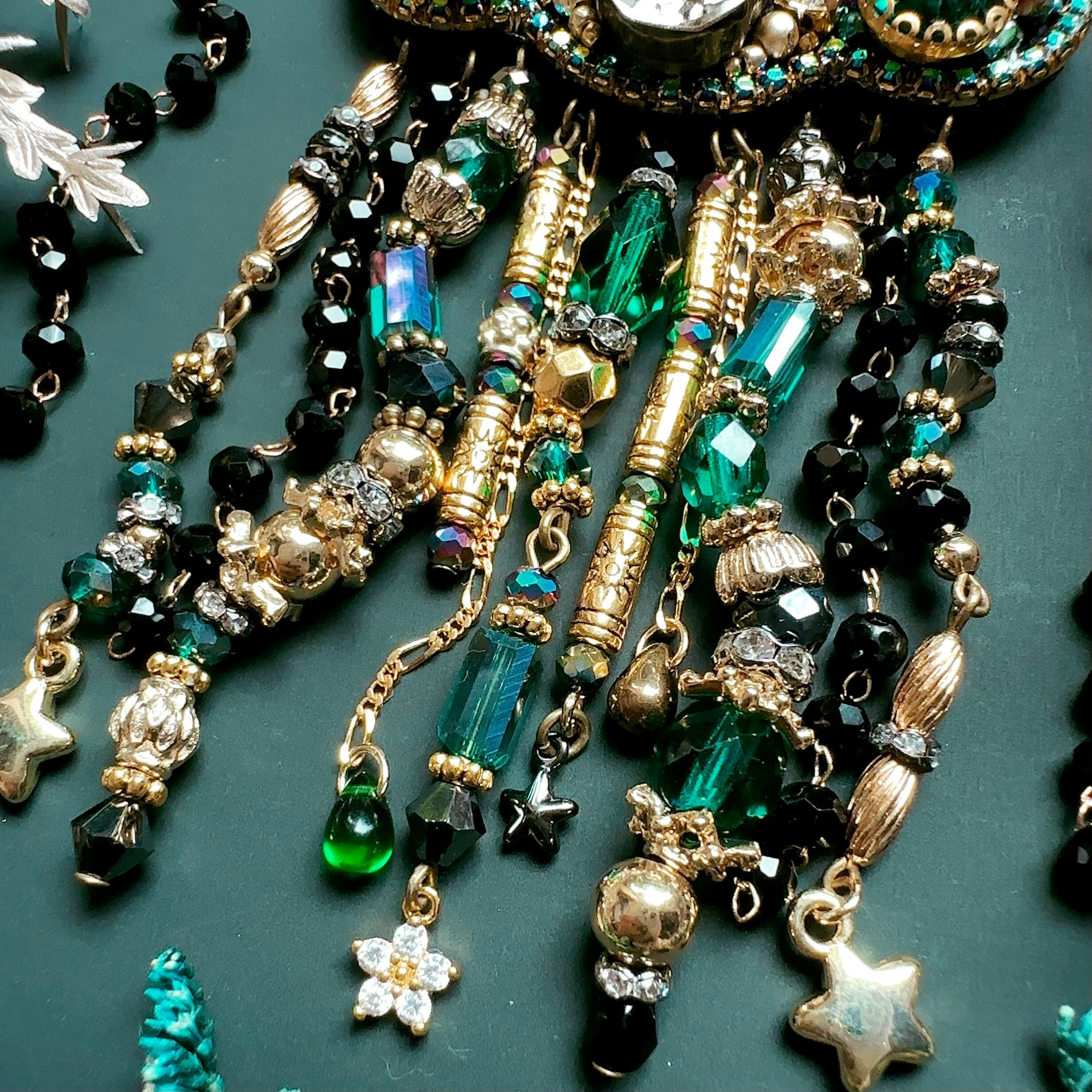 ビーズ刺繍のブローチ・ネックレス・バッグチャームの3wayです。