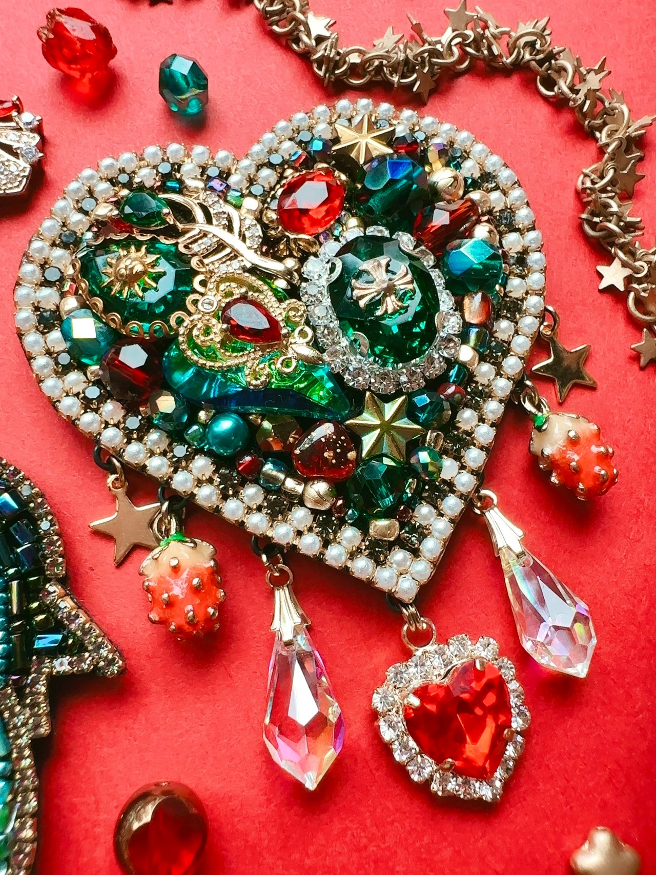ビーズ刺繍のブローチ・ネックレス・バッグチャームの3wayです。