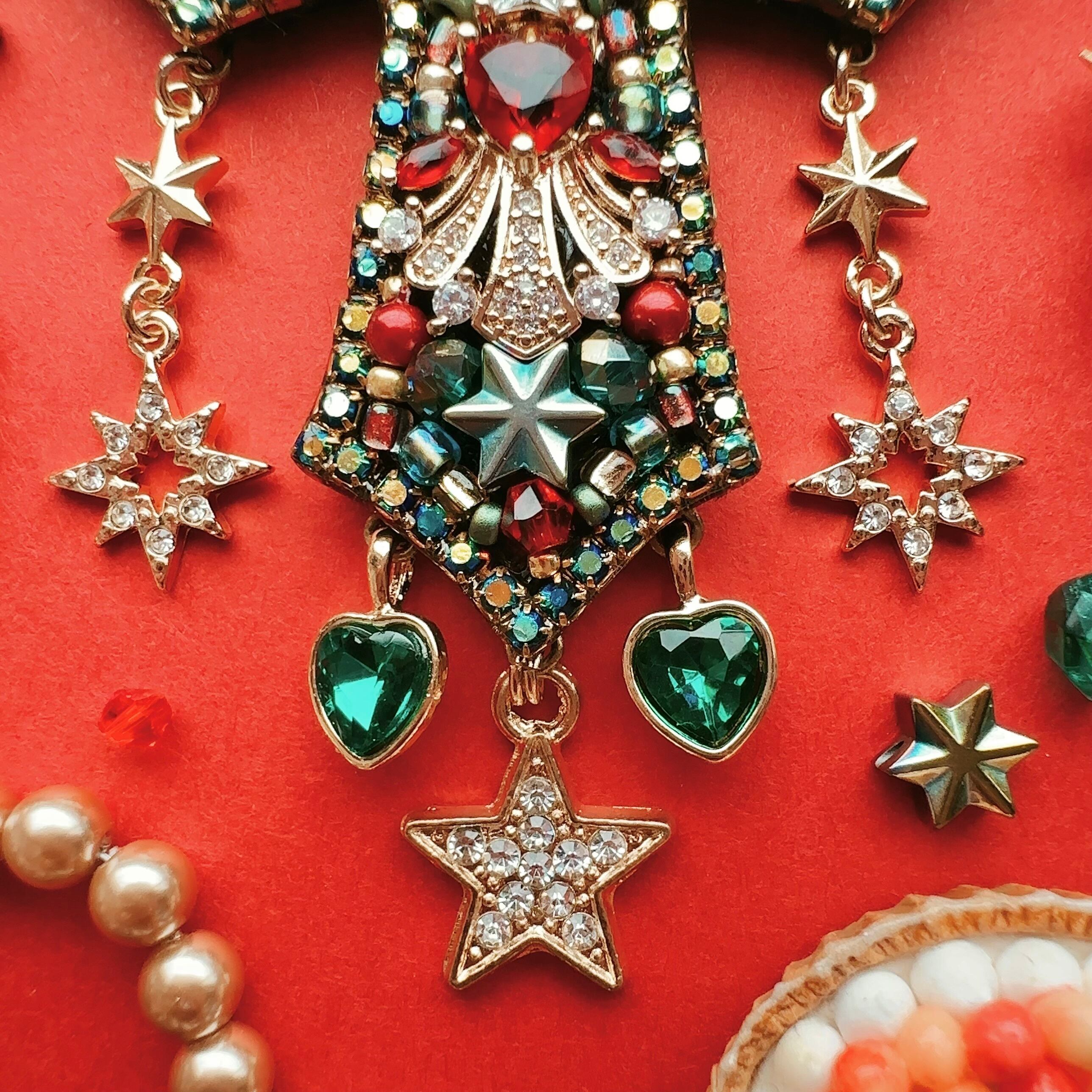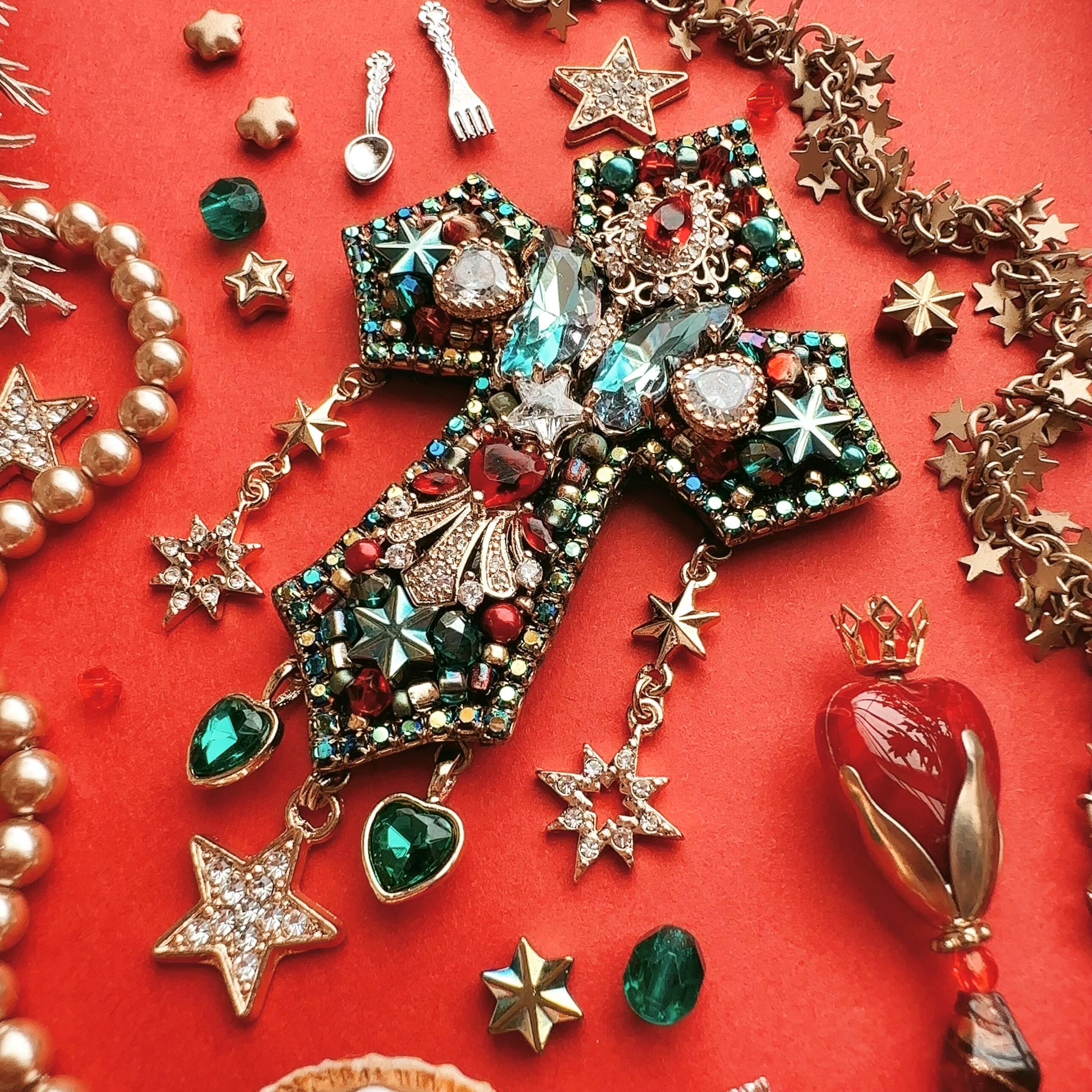 ビーズ刺繍のブローチ・ネックレス・バッグチャームの3wayです。