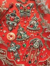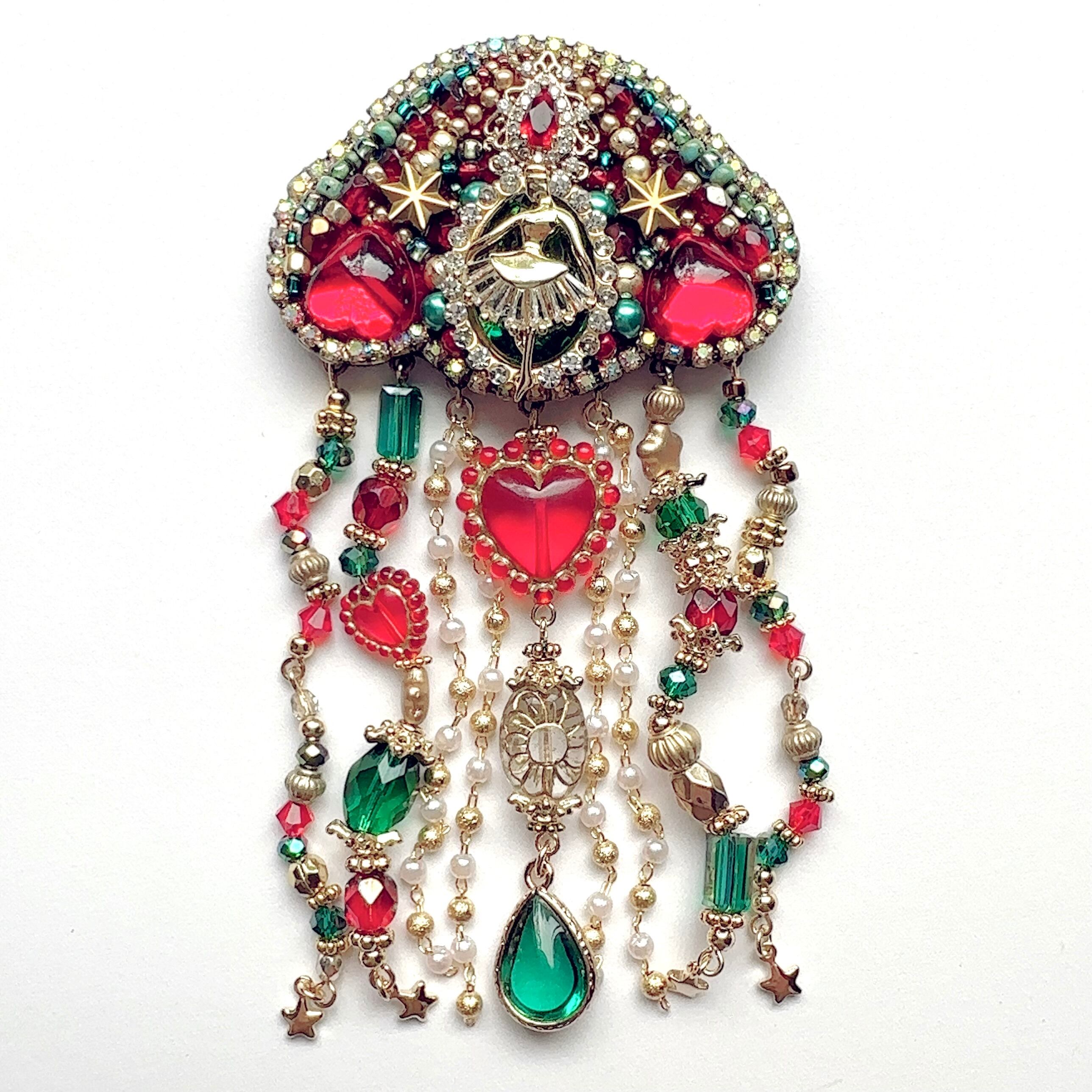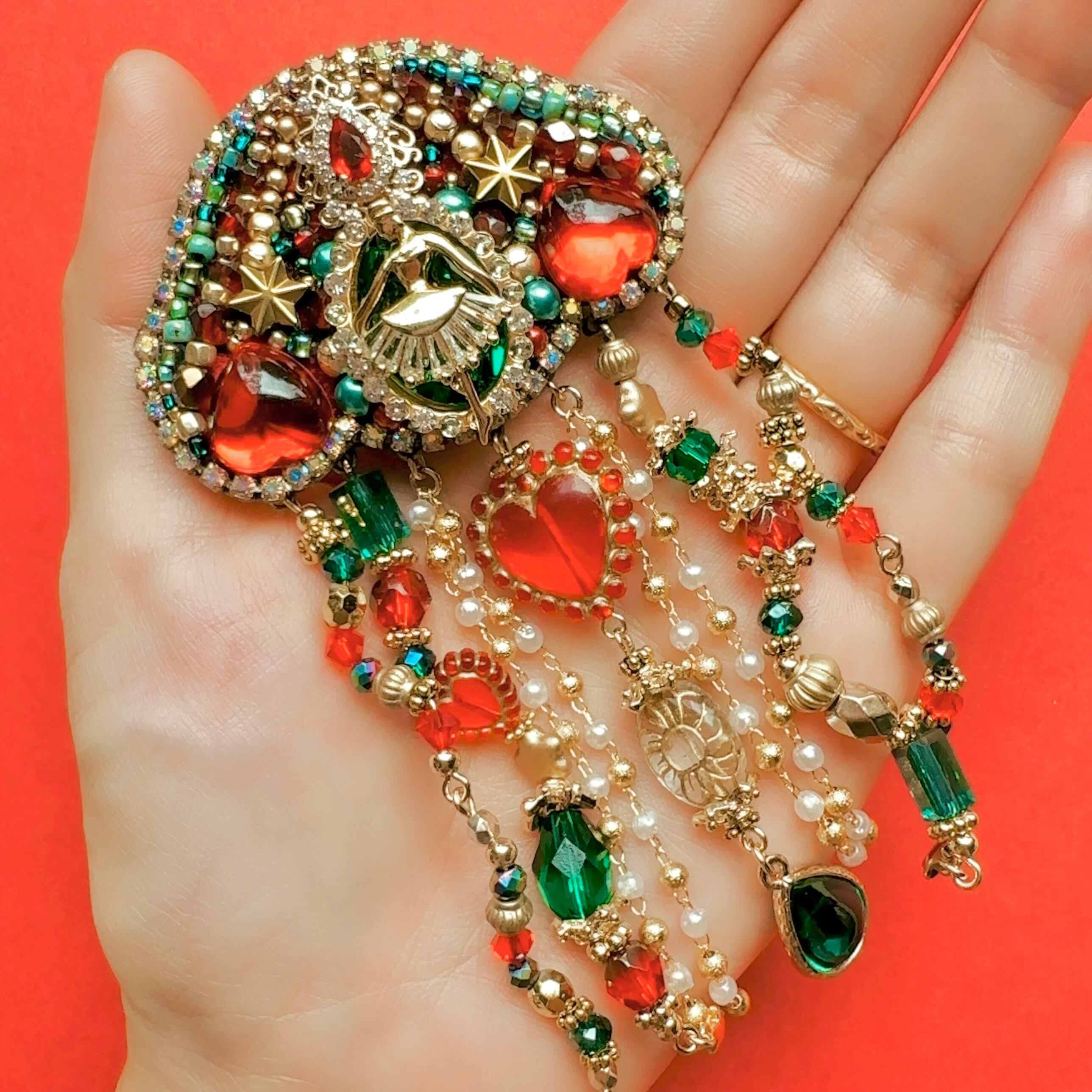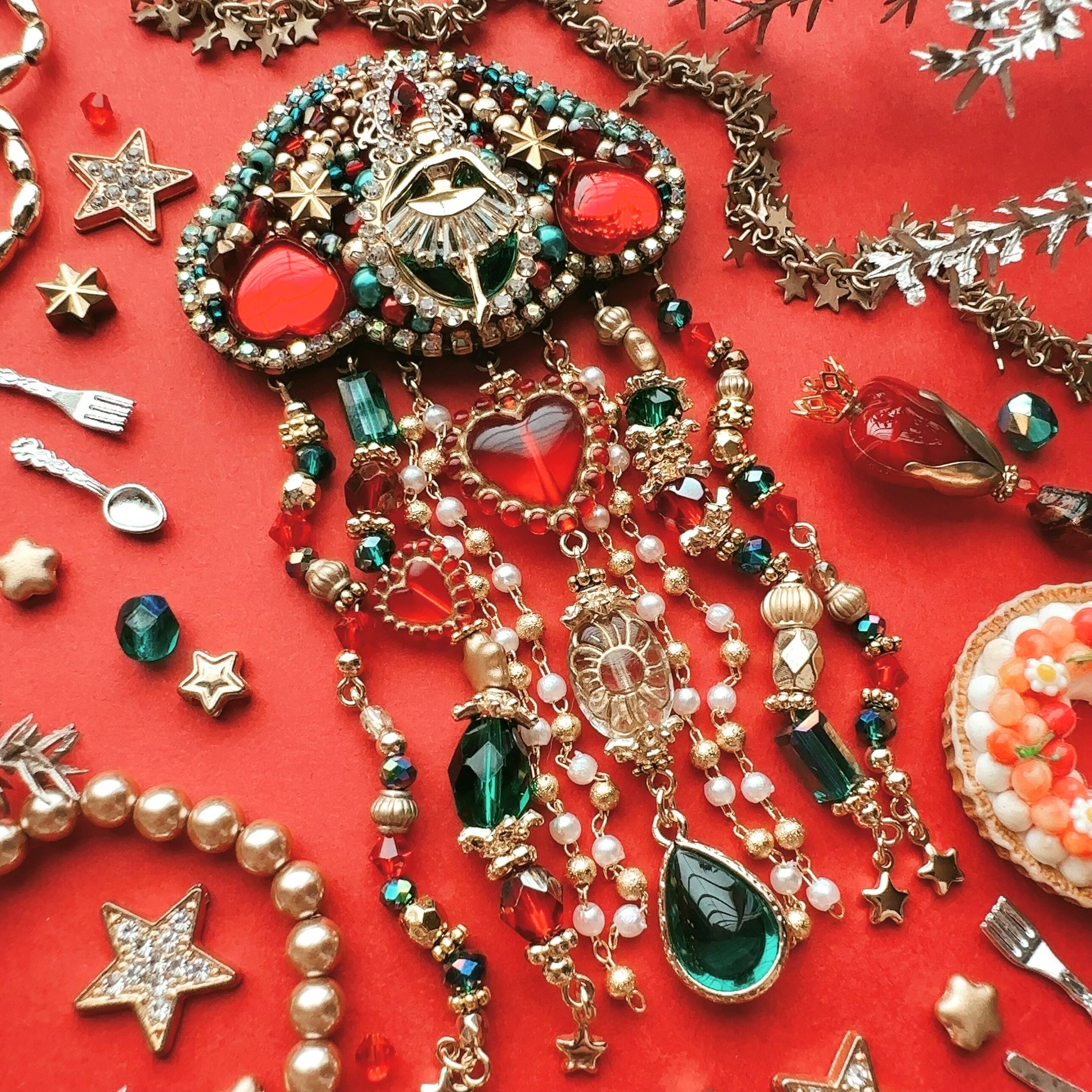 ビーズ刺繍のブローチ・ネックレス・バッグチャームの3wayです。