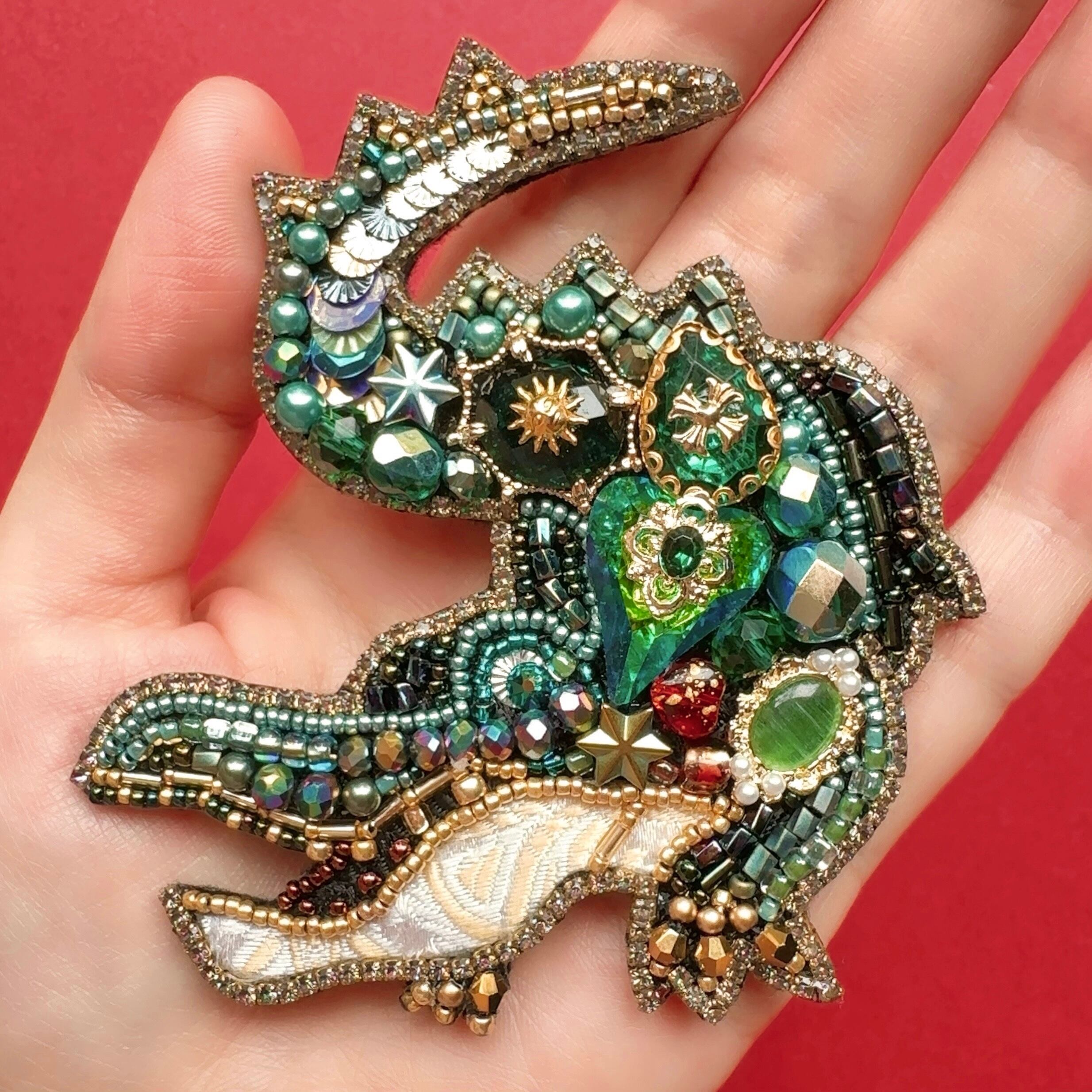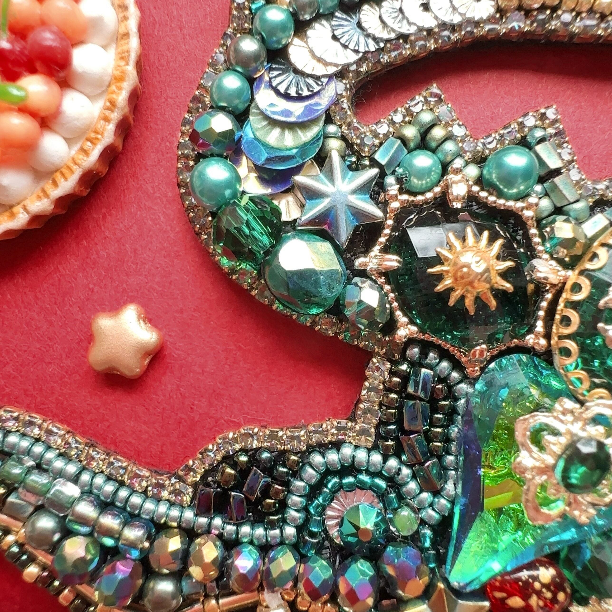 ビーズ刺繍のブローチ・ネックレス・バッグチャームの3wayです。