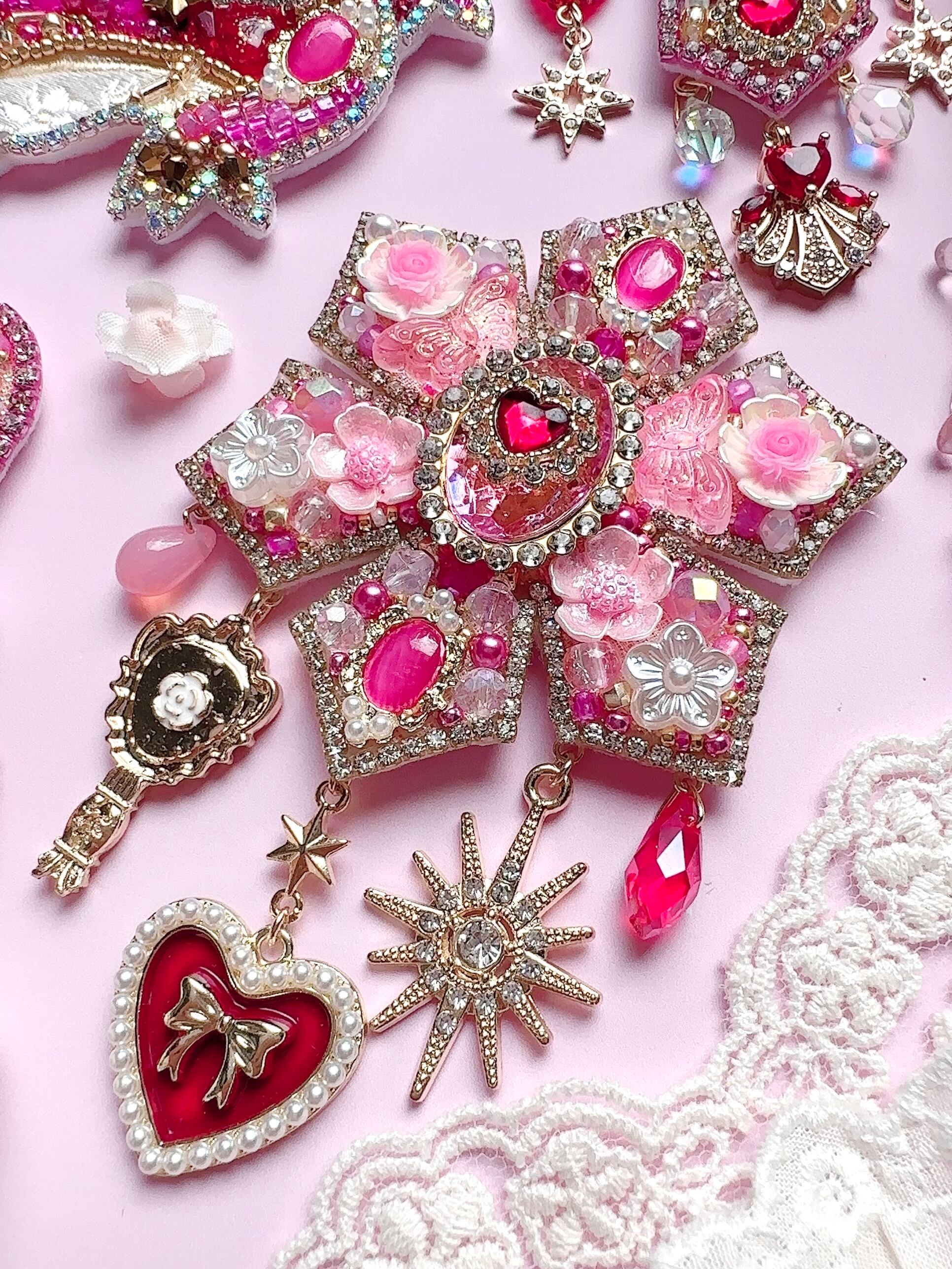 ビーズ刺繍のブローチ・ネックレス・バッグチャームの3wayです。