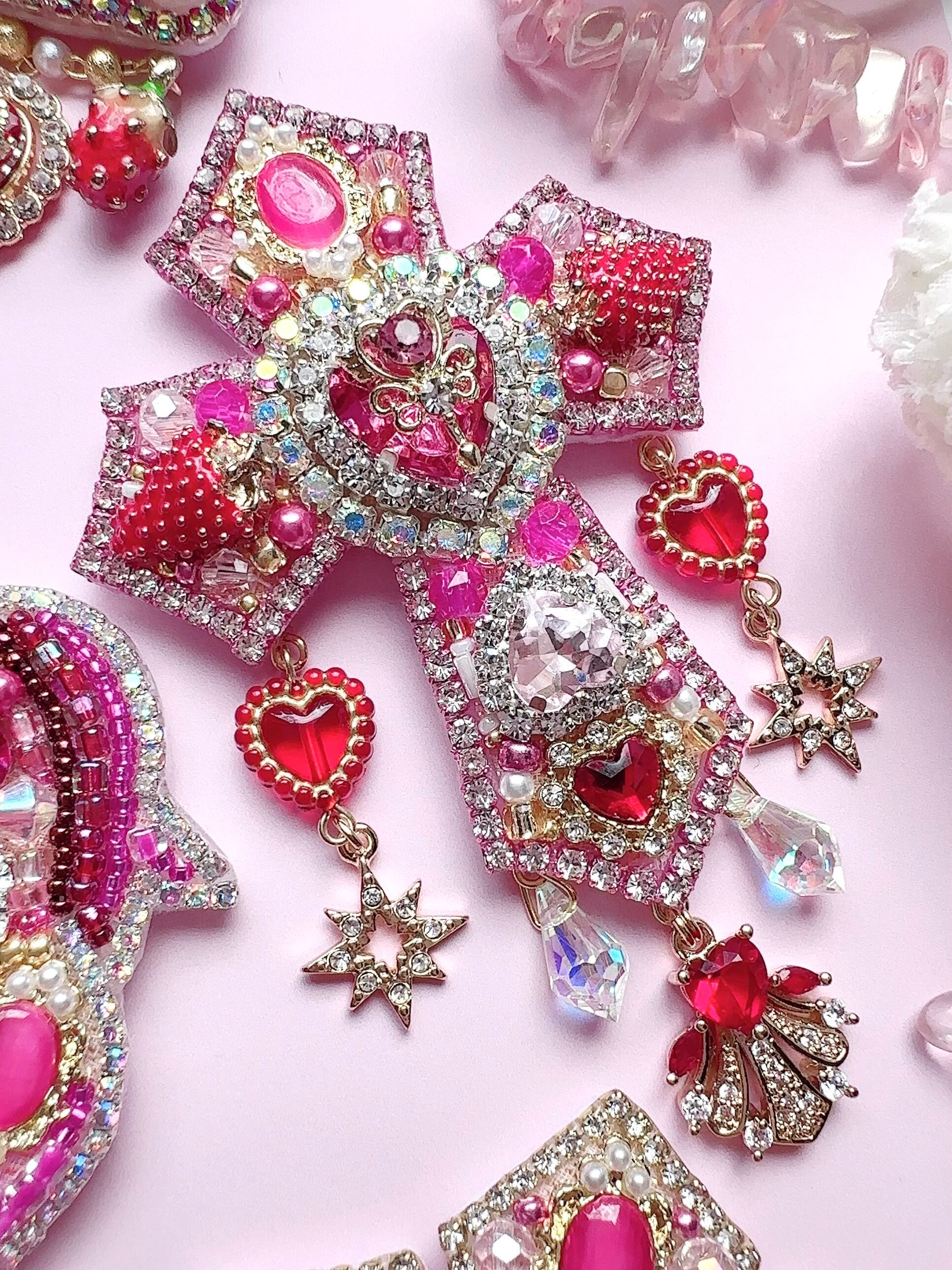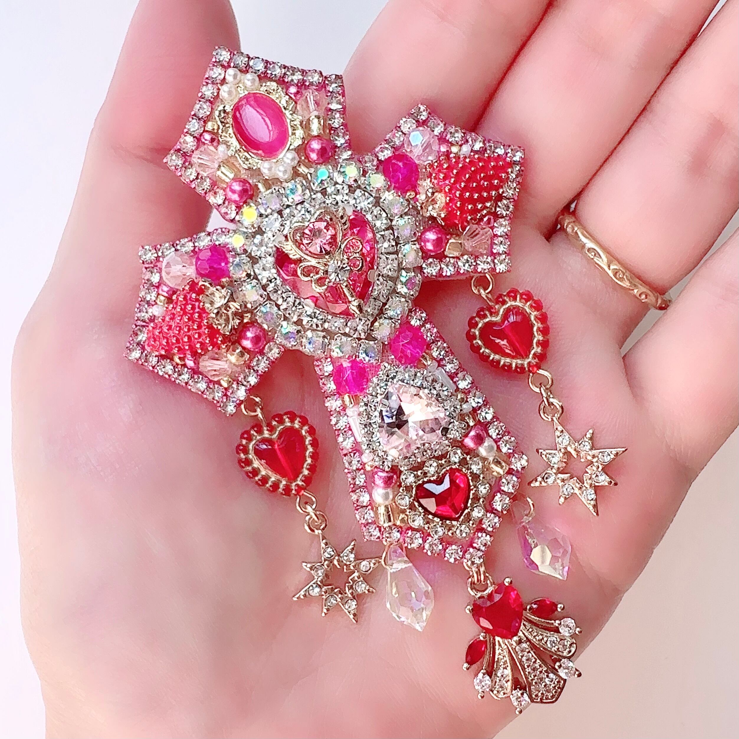 ビーズ刺繍のブローチ・ネックレス・バッグチャームの3wayです。