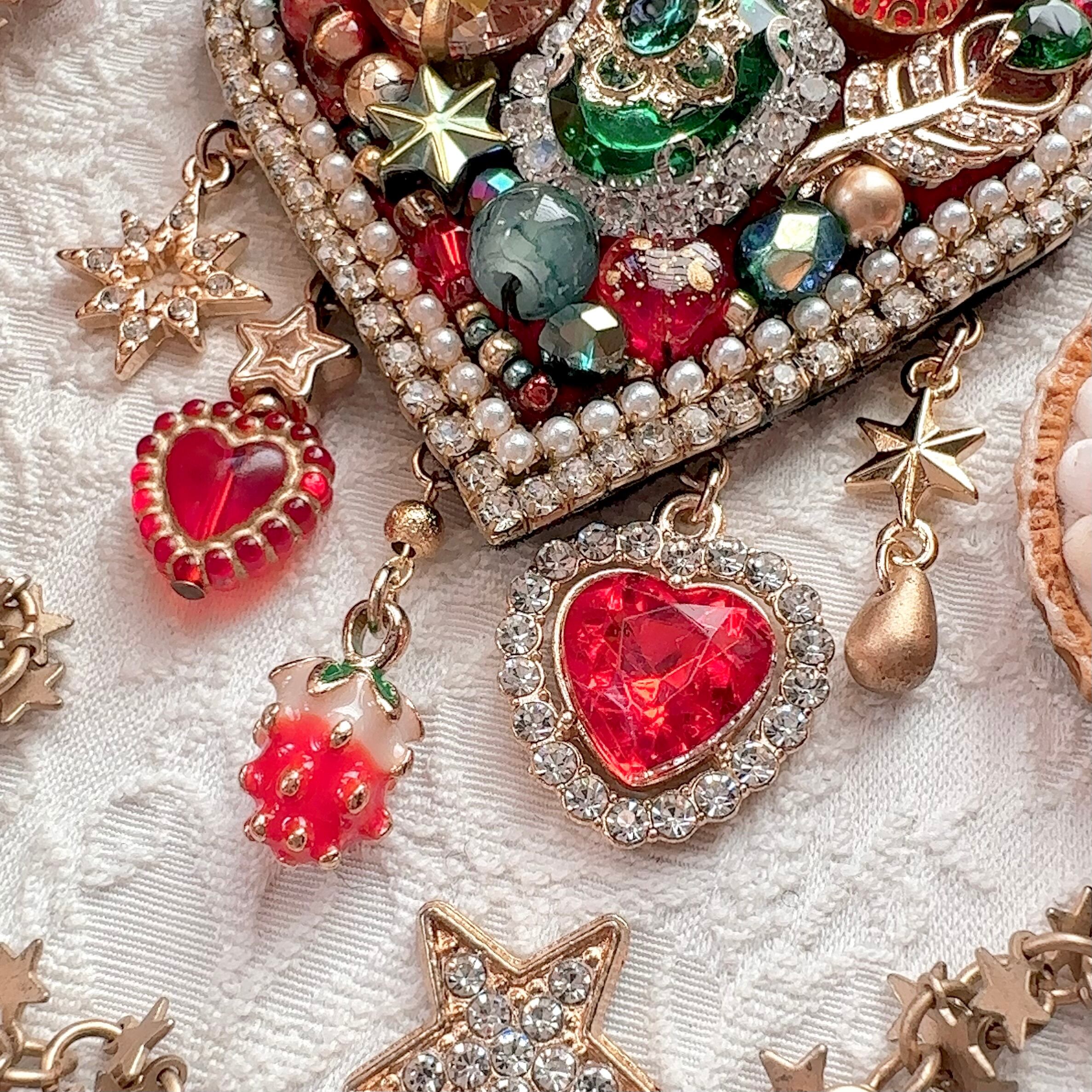 ビーズ刺繍のブローチ・ネックレス・バッグチャームの3wayです。