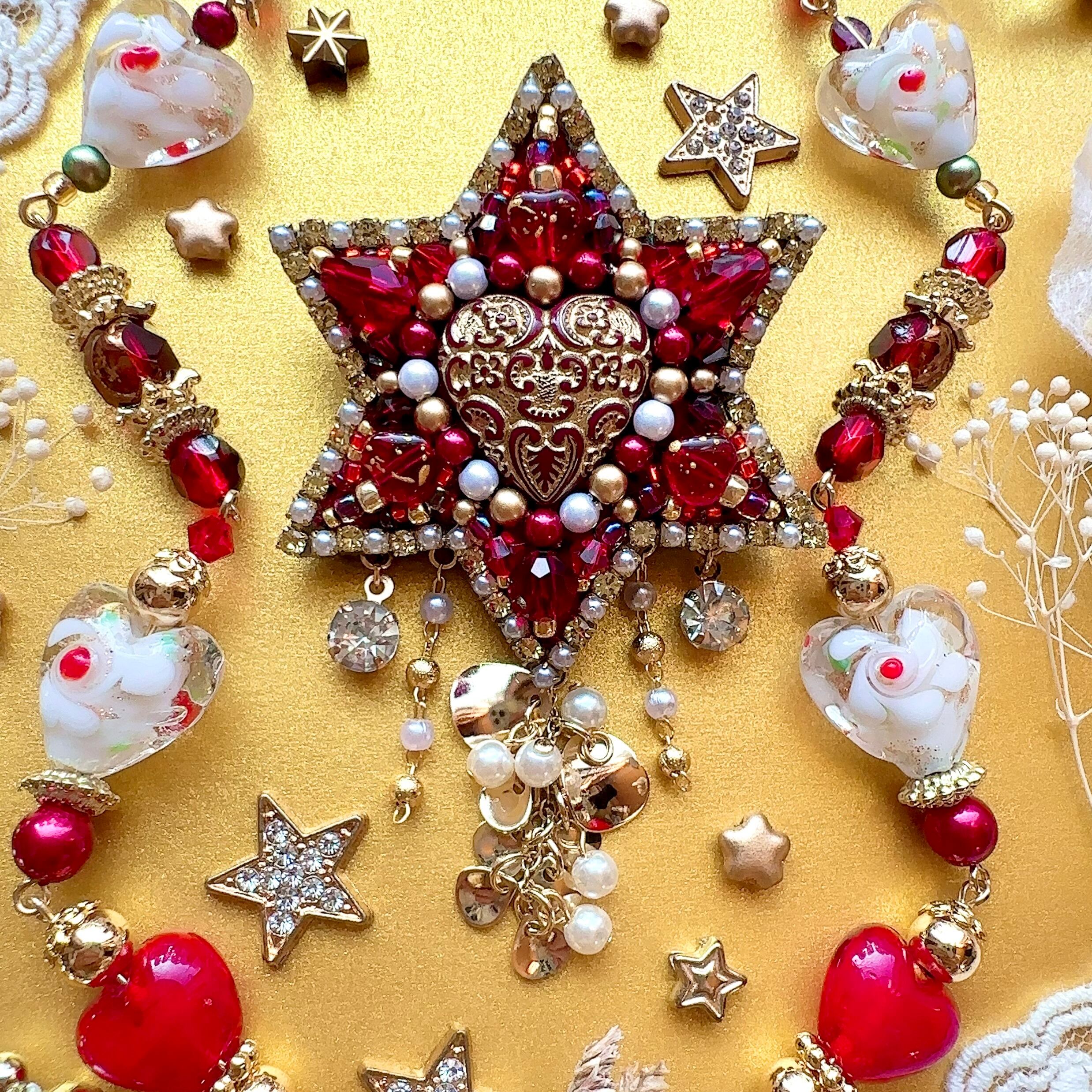 ビーズ刺繍のブローチ・ネックレス・バッグチャームの3wayです。