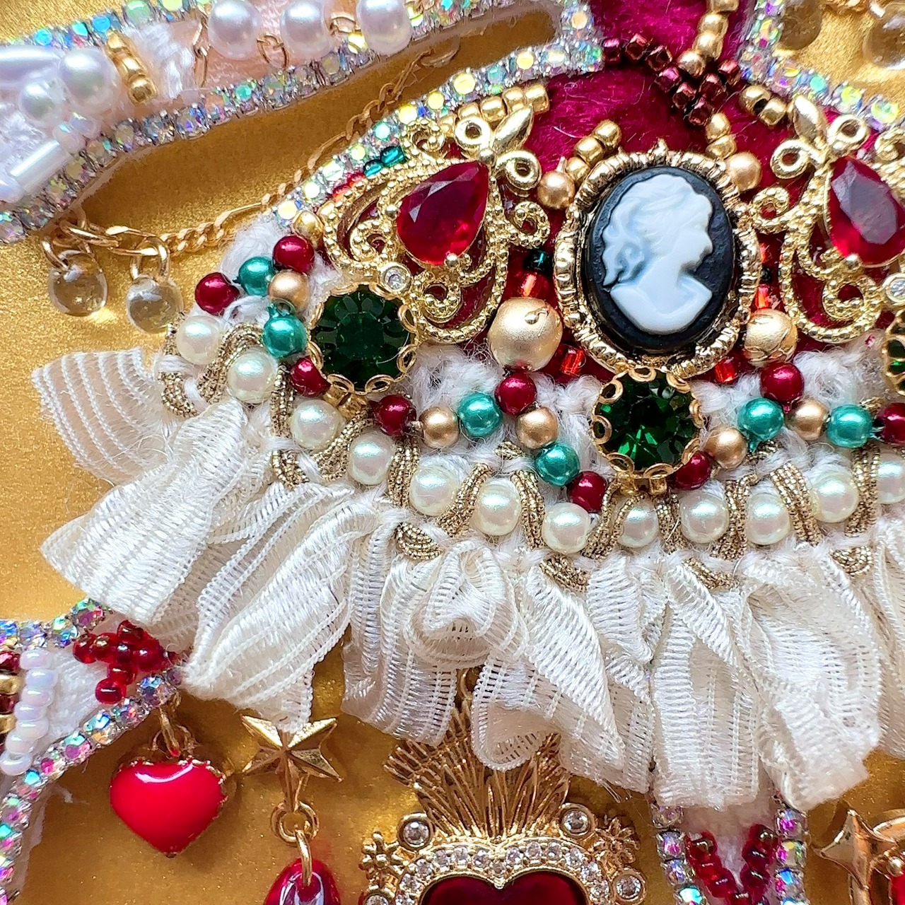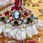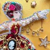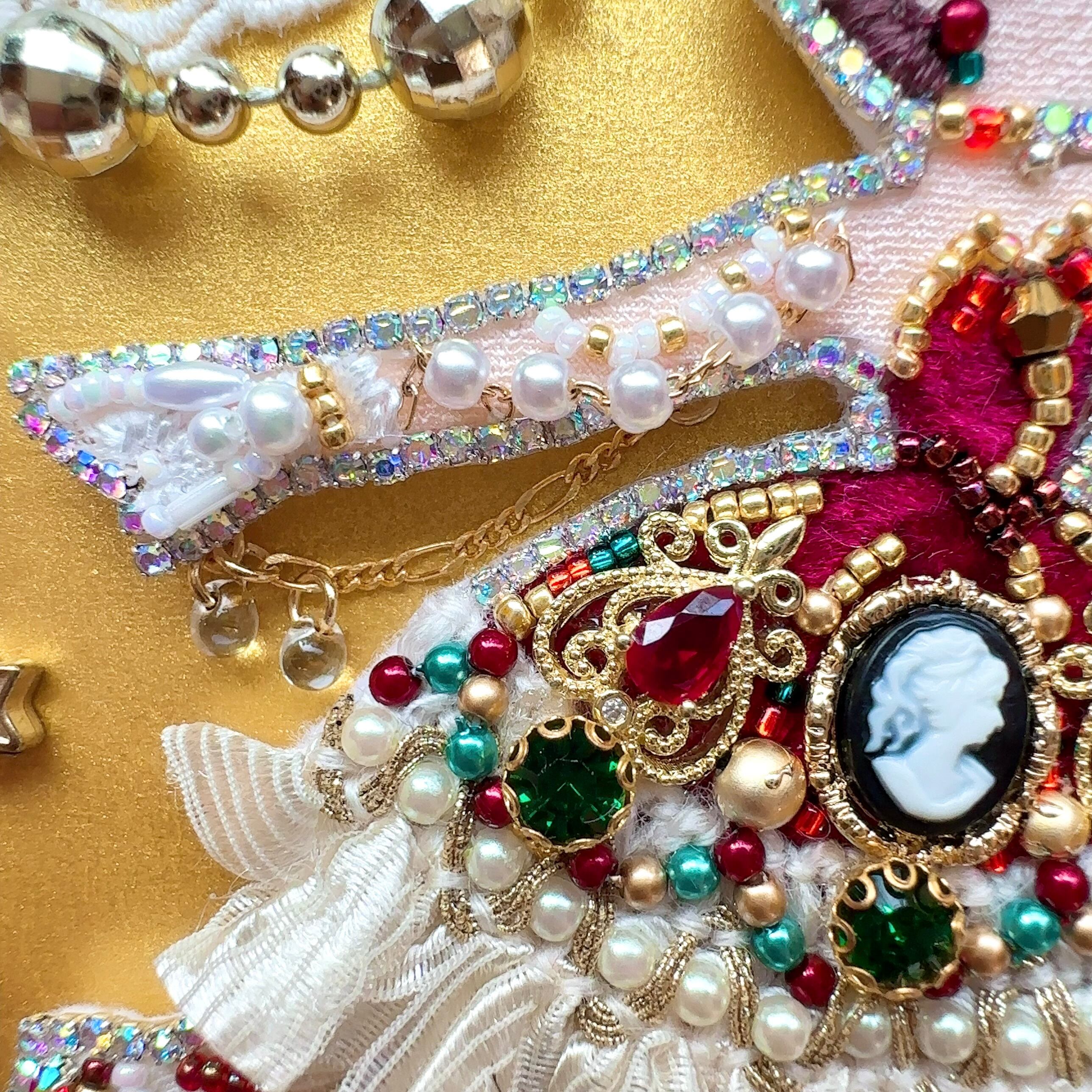 ビーズ刺繍のブローチ・ネックレス・バッグチャームの3wayです。