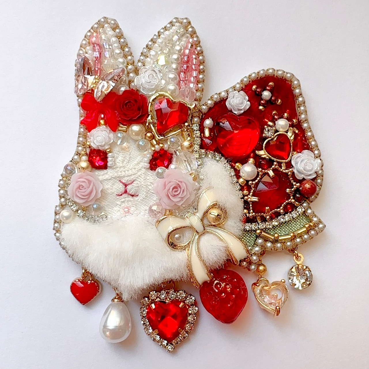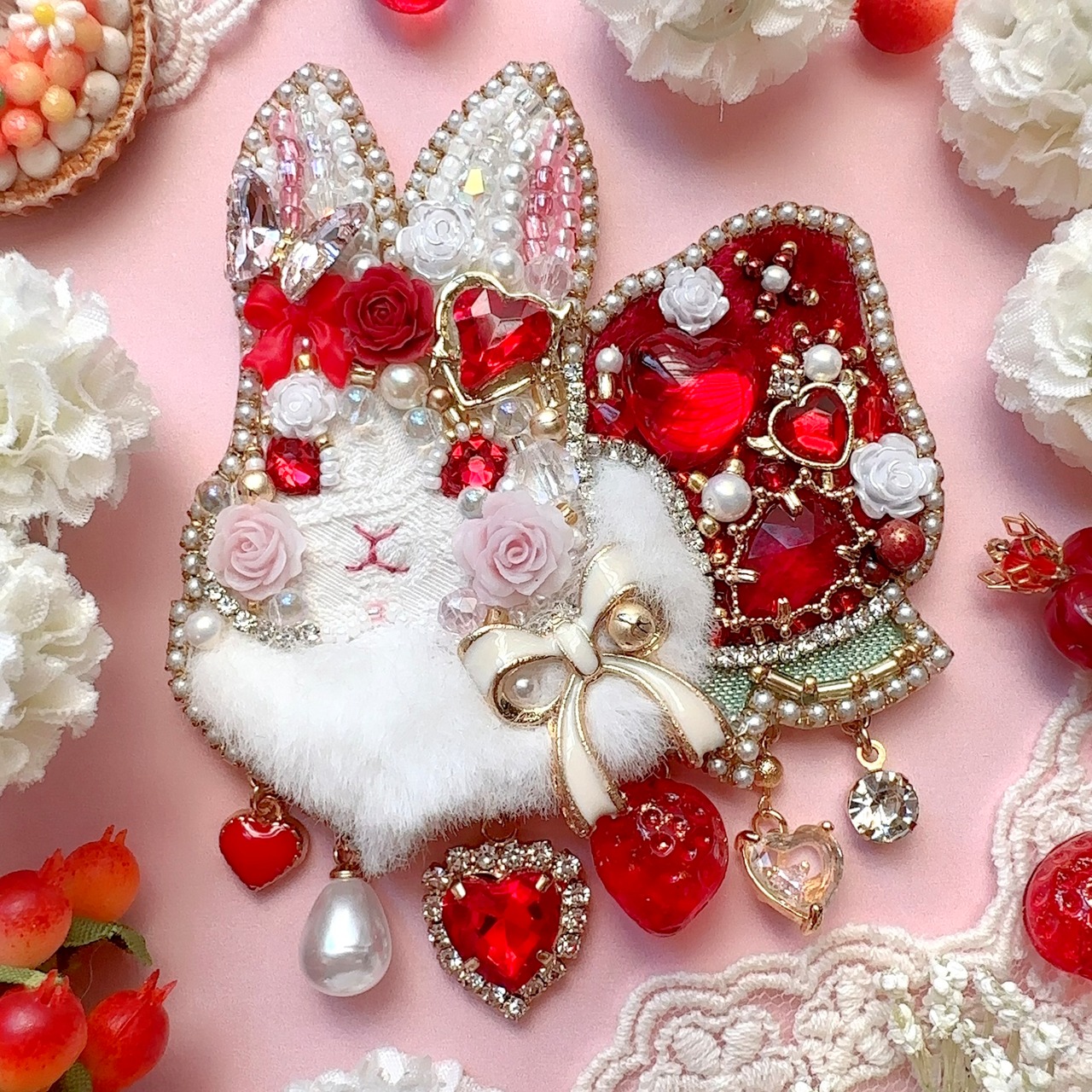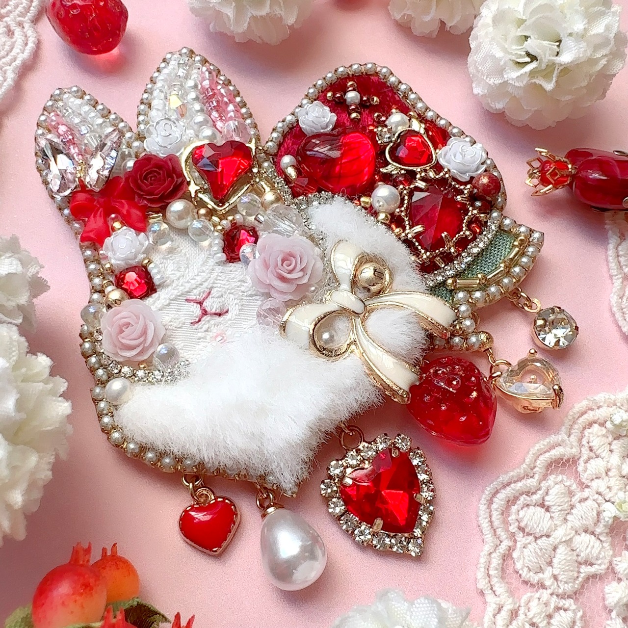ビーズ刺繍のブローチ・ネックレス・バッグチャームの3wayです。