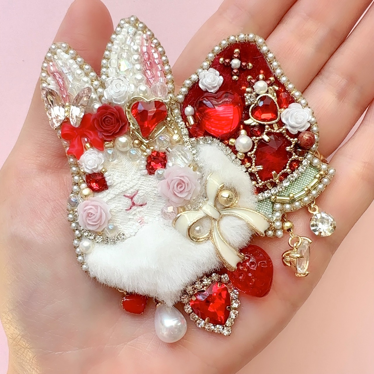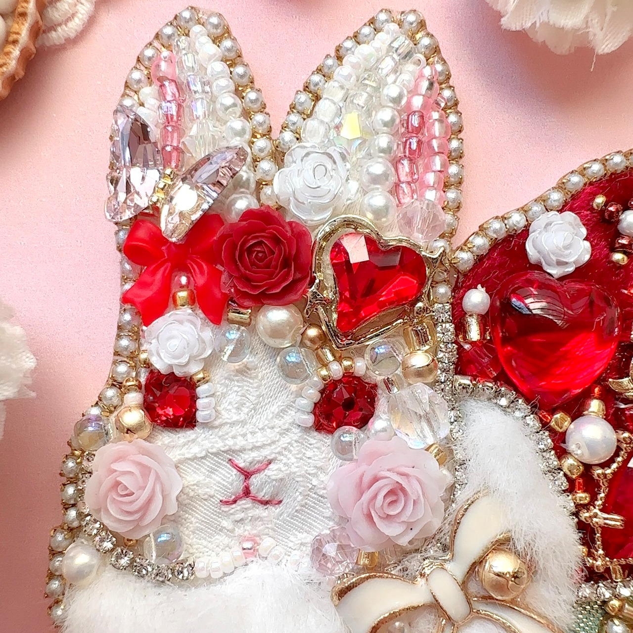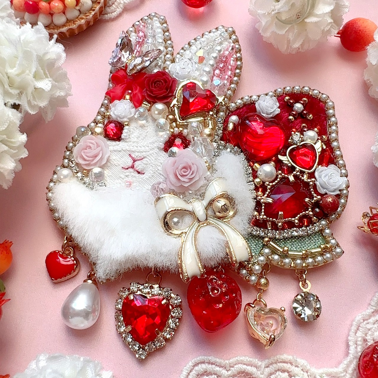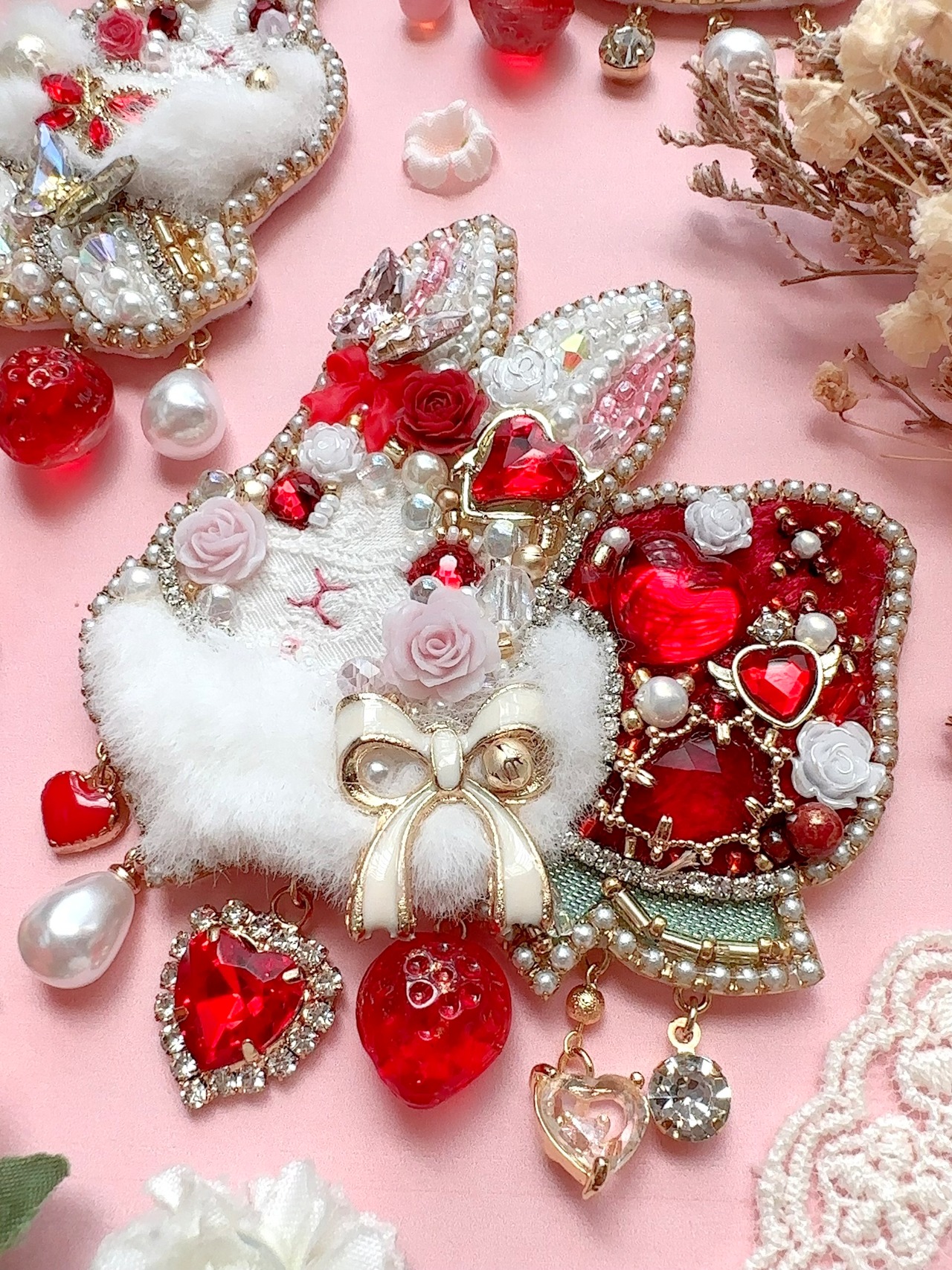 ビーズ刺繍のブローチ・ネックレス・バッグチャームの3wayです。