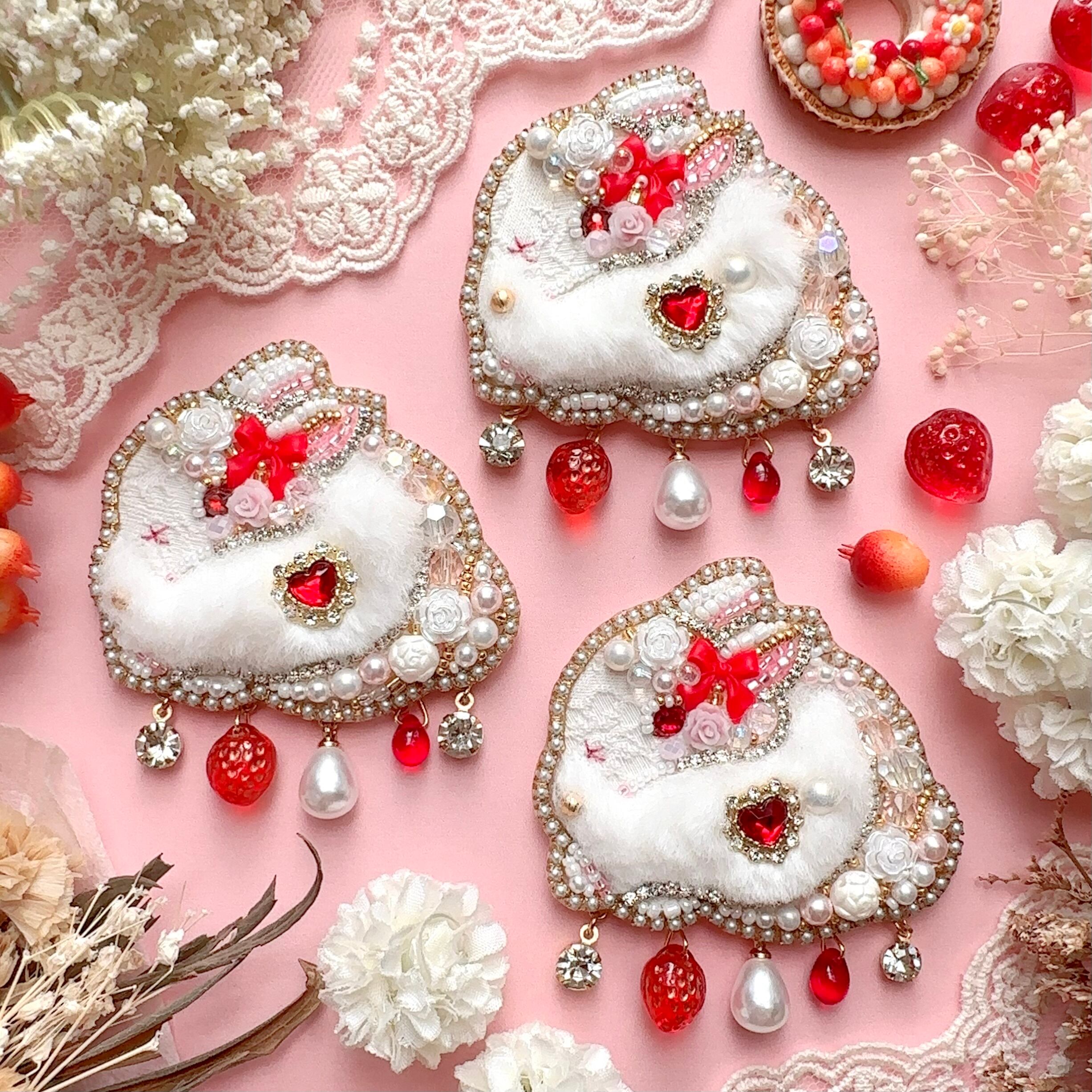 ビーズ刺繍のブローチ・ネックレス・バッグチャームの3wayです。