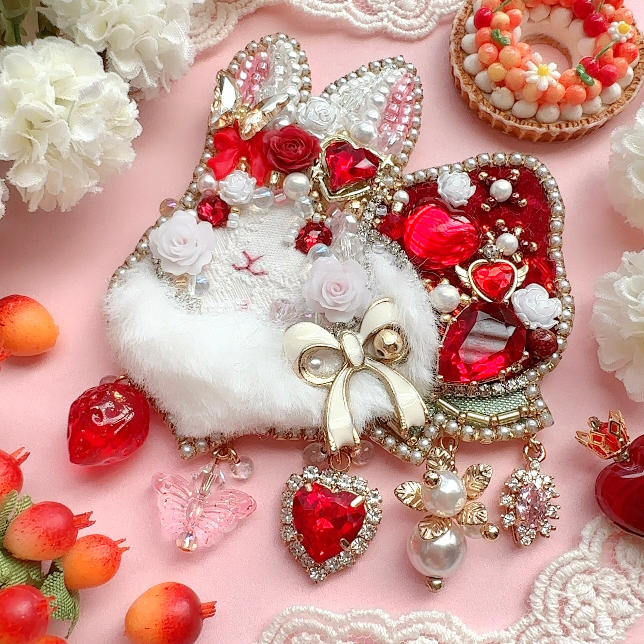 ビーズ刺繍のブローチ・ネックレス・バッグチャームの3wayです。