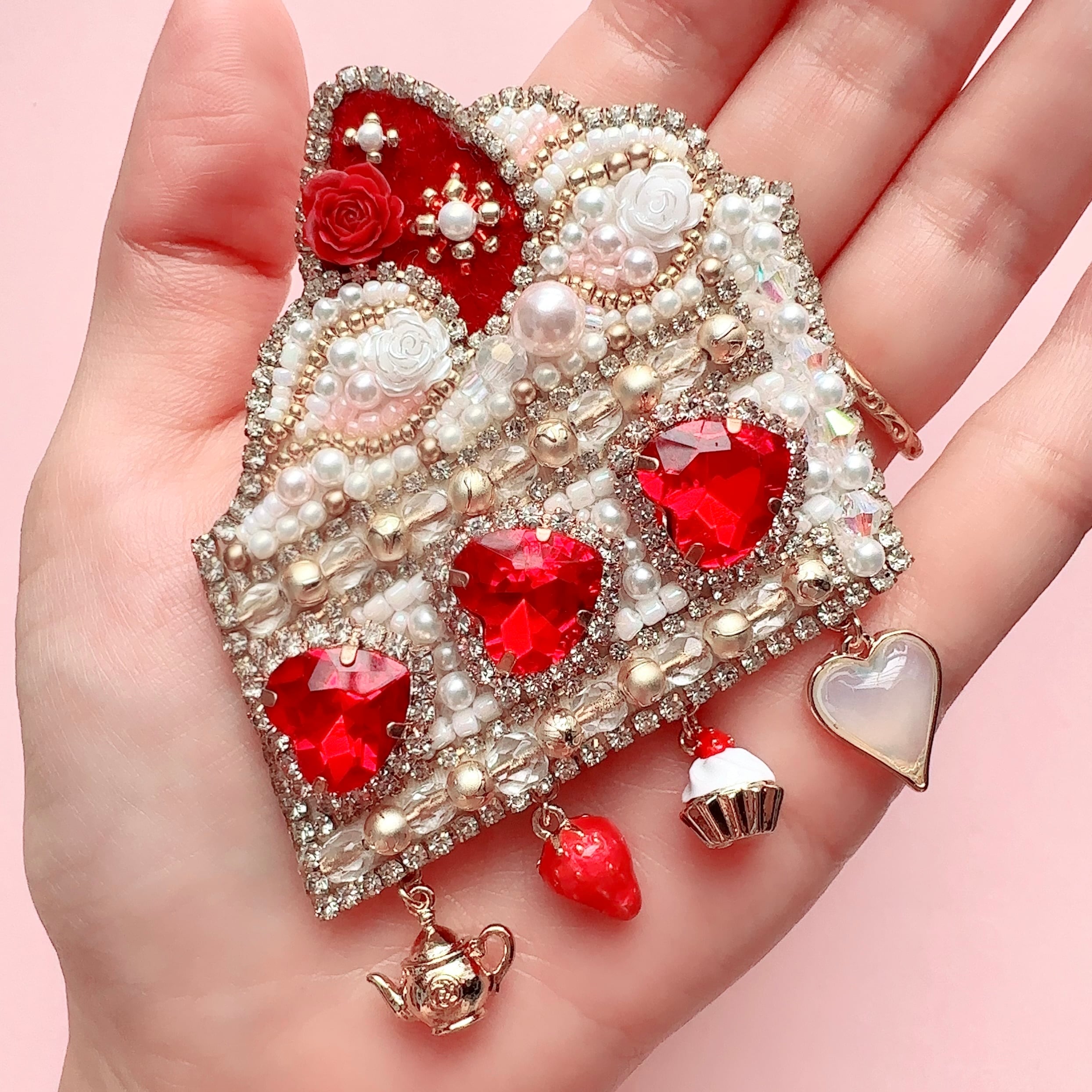 ビーズ刺繍のブローチ・ネックレス・バッグチャームの3wayです。