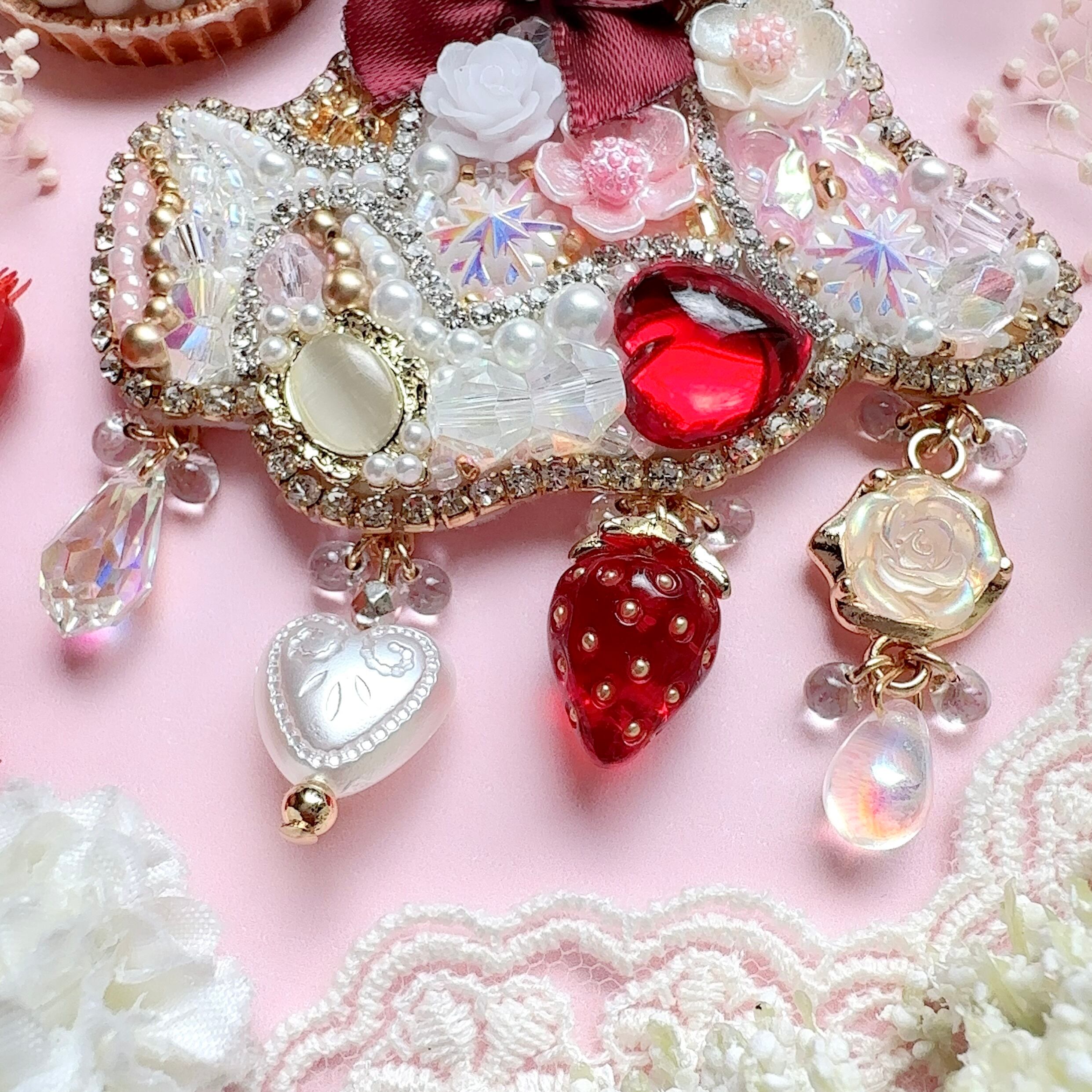 ビーズ刺繍のブローチ・ネックレス・バッグチャームの3wayです。