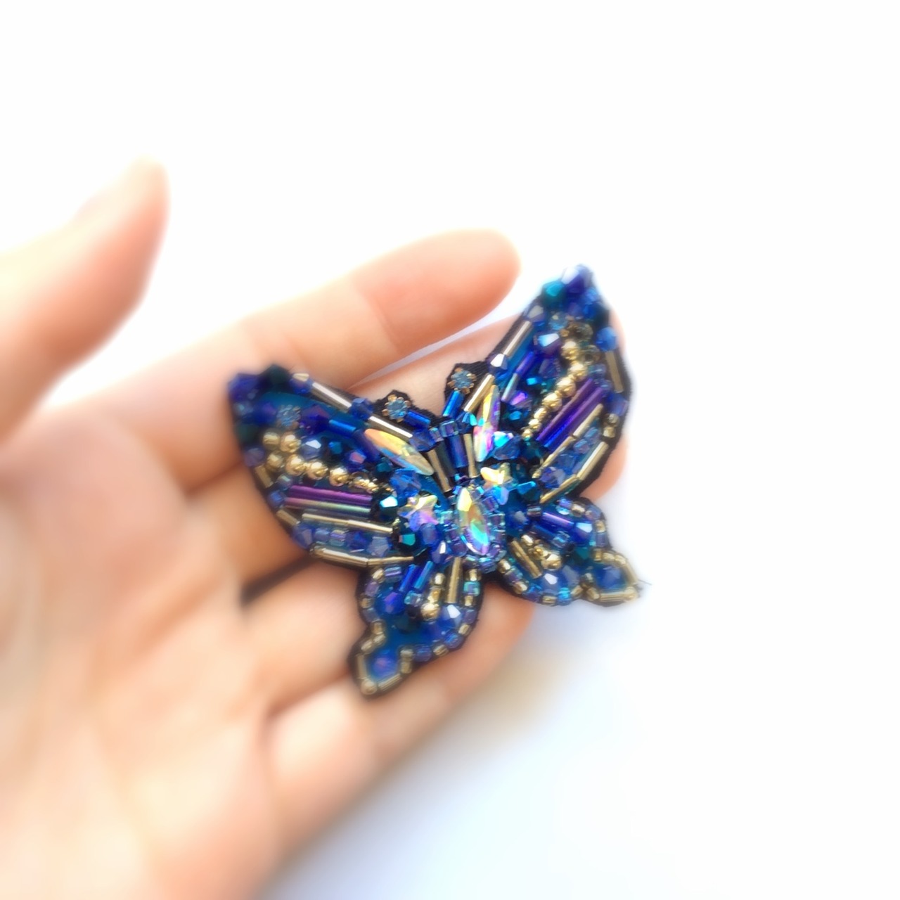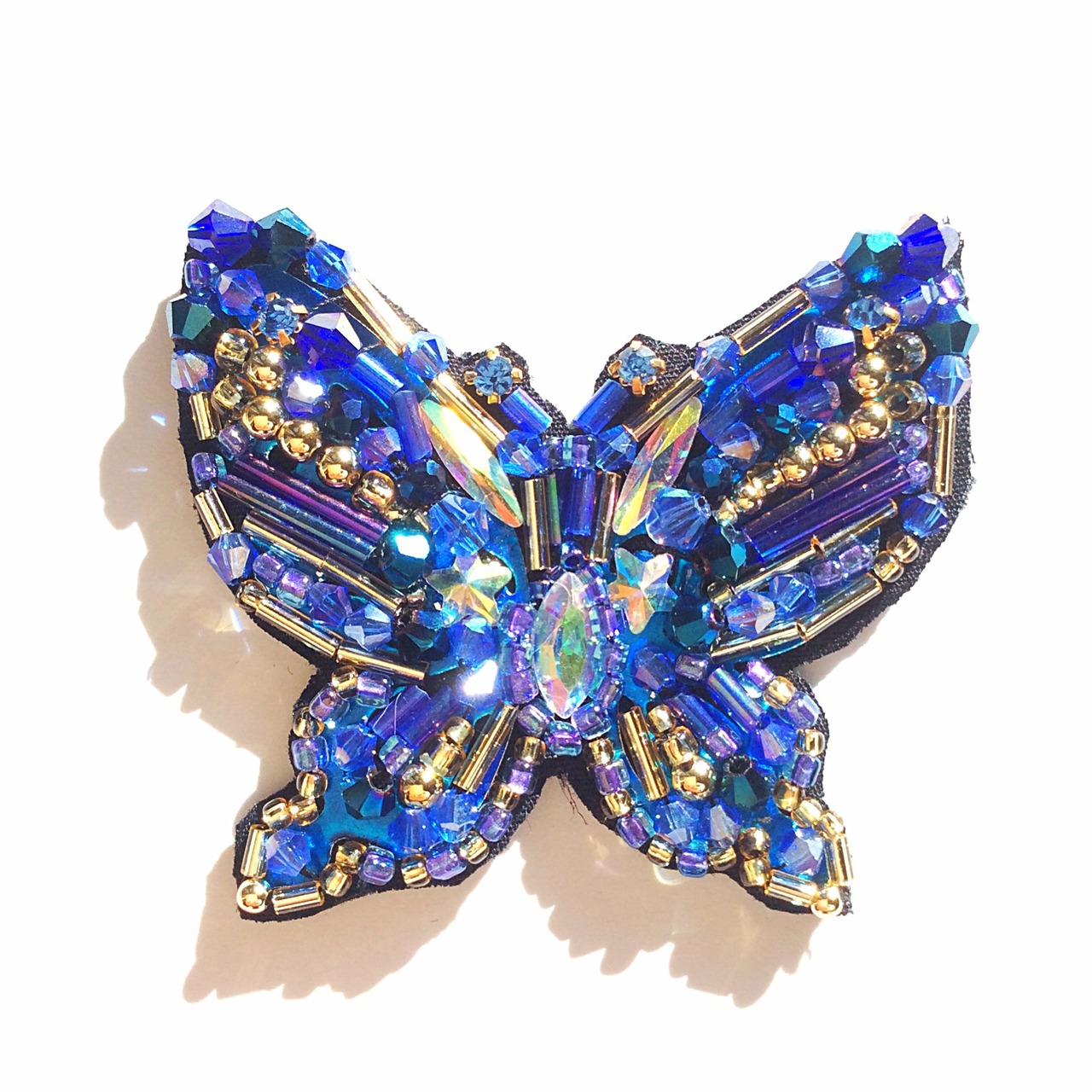 ガラスビーズたっぷりのビーズ刺繍のブローチ