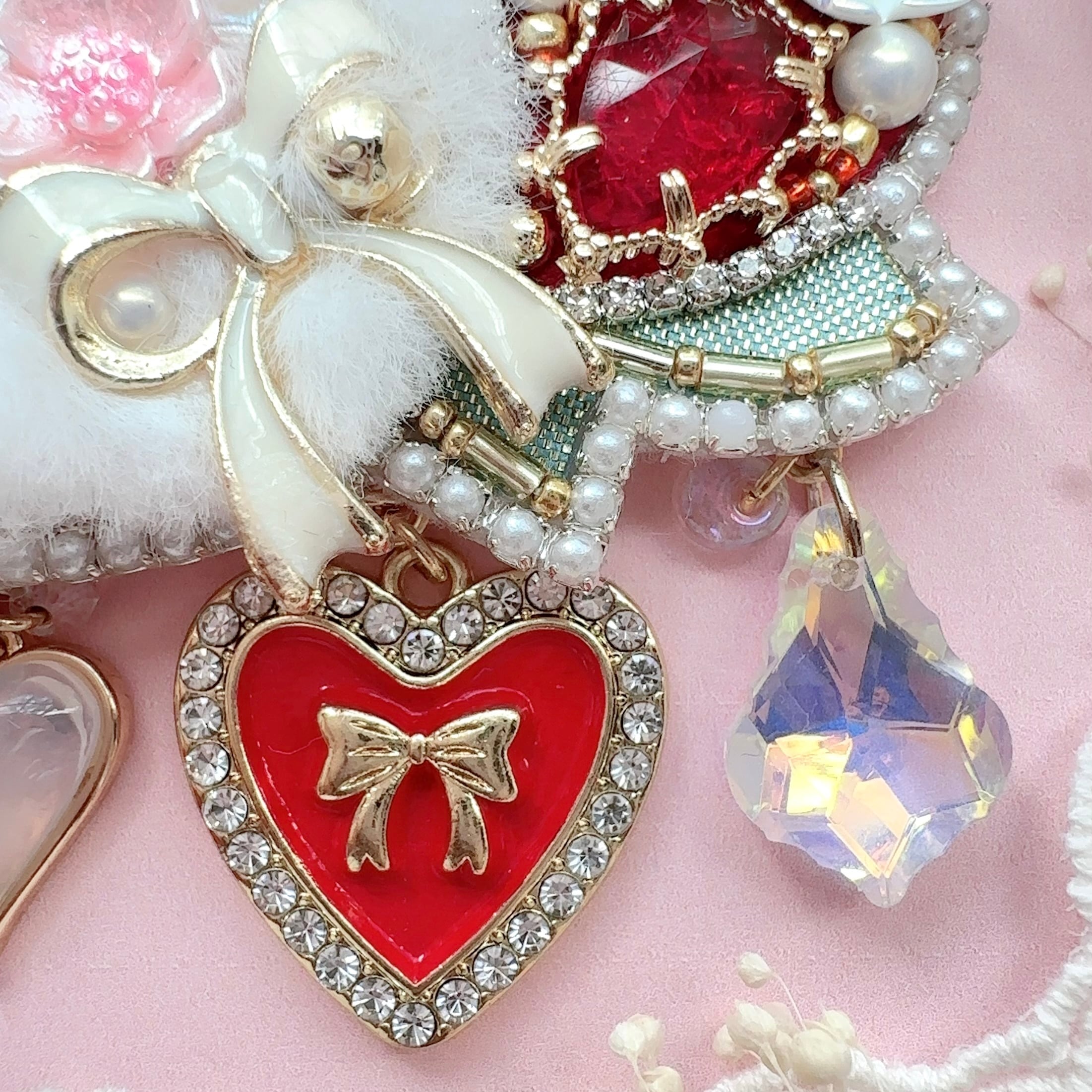 ビーズ刺繍のブローチ・ネックレス・バッグチャームの3wayです。