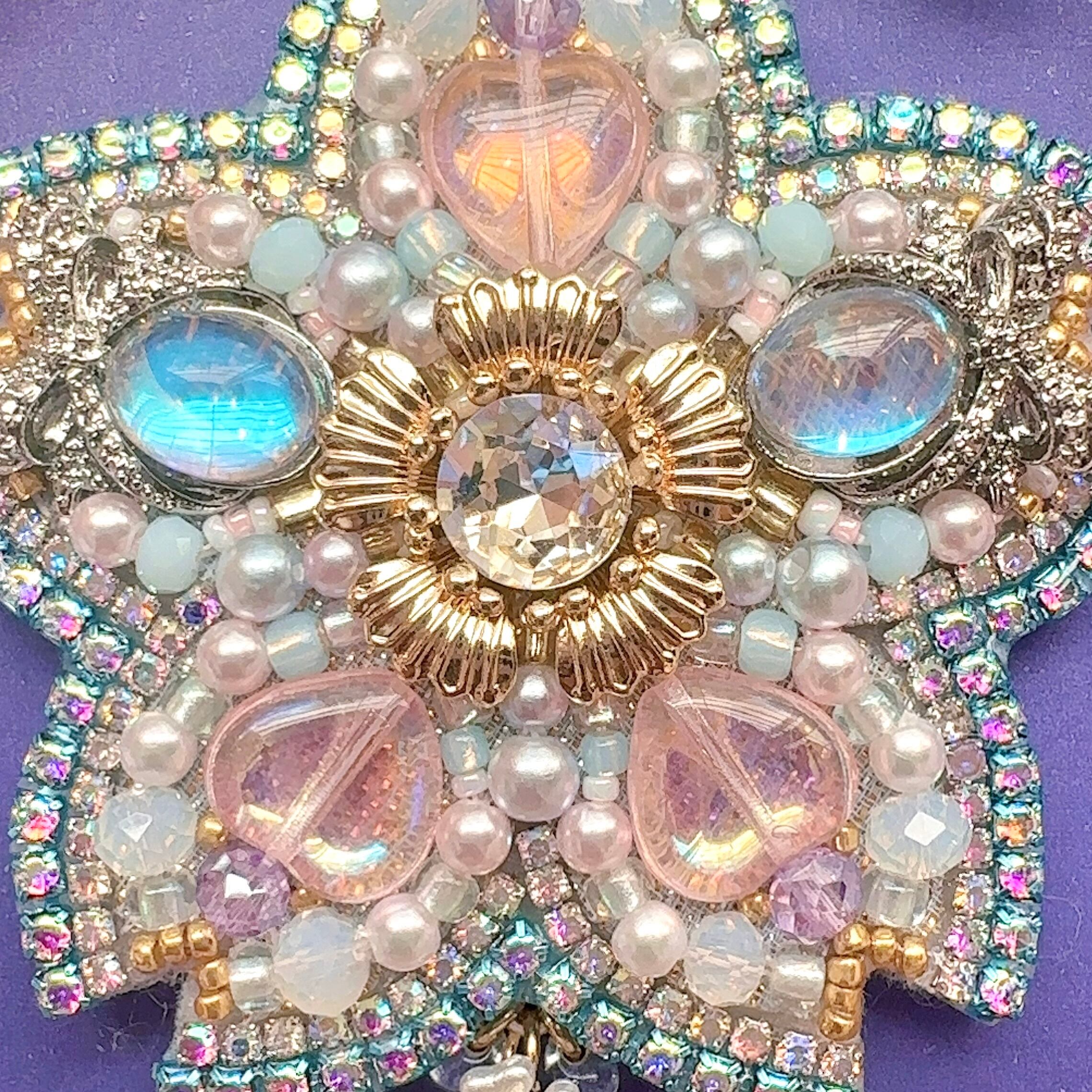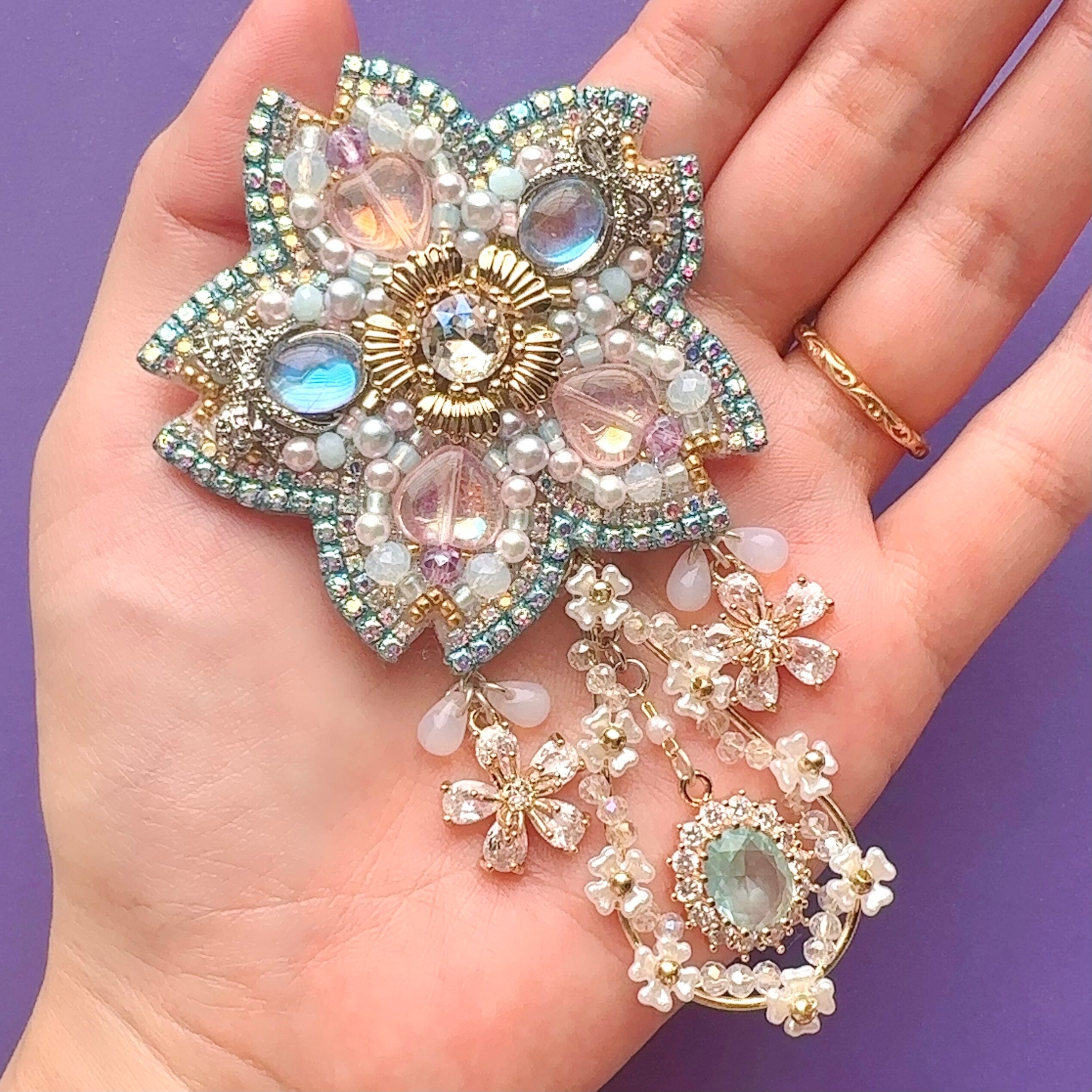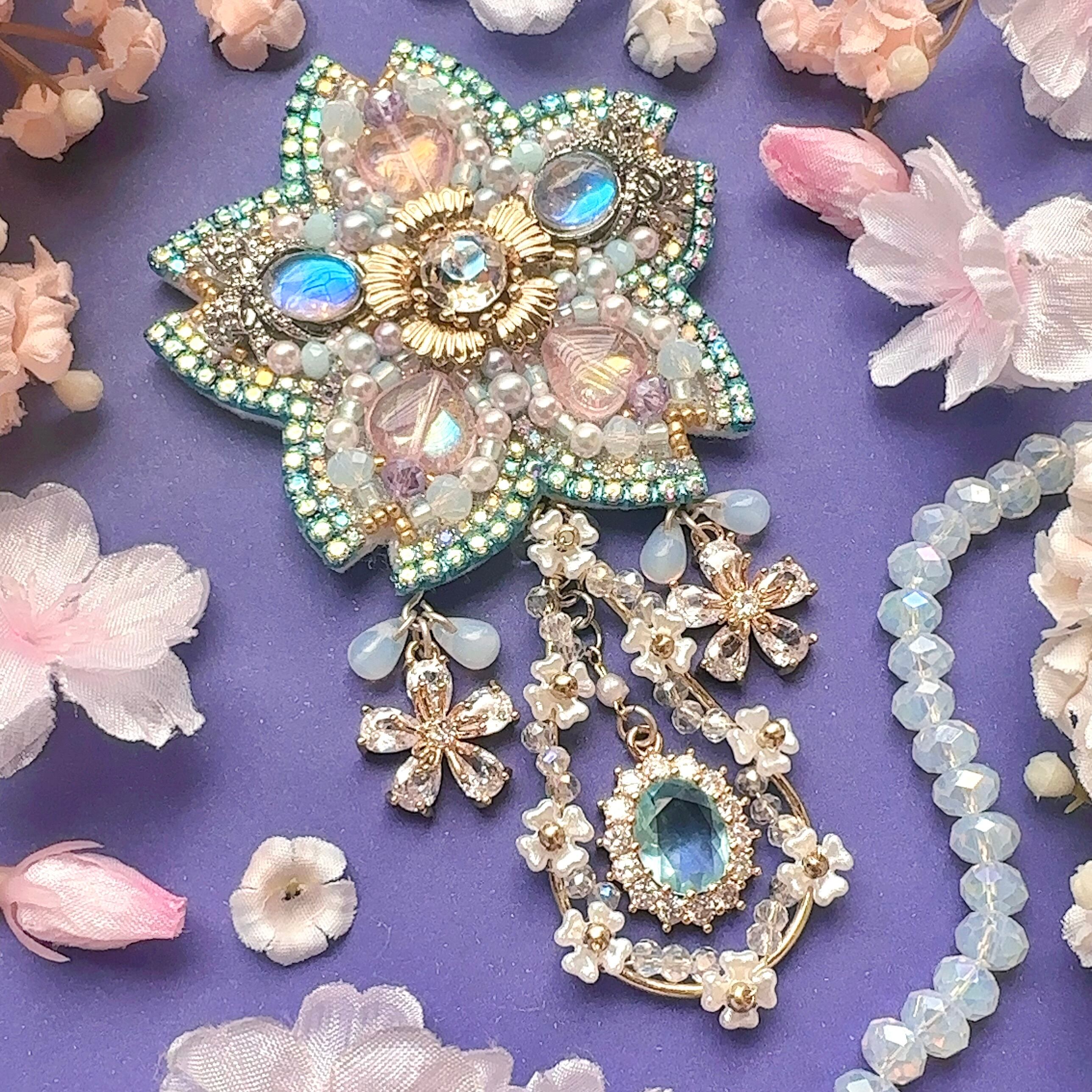 ビーズ刺繍のブローチ・ネックレス・バッグチャームの3wayです。
