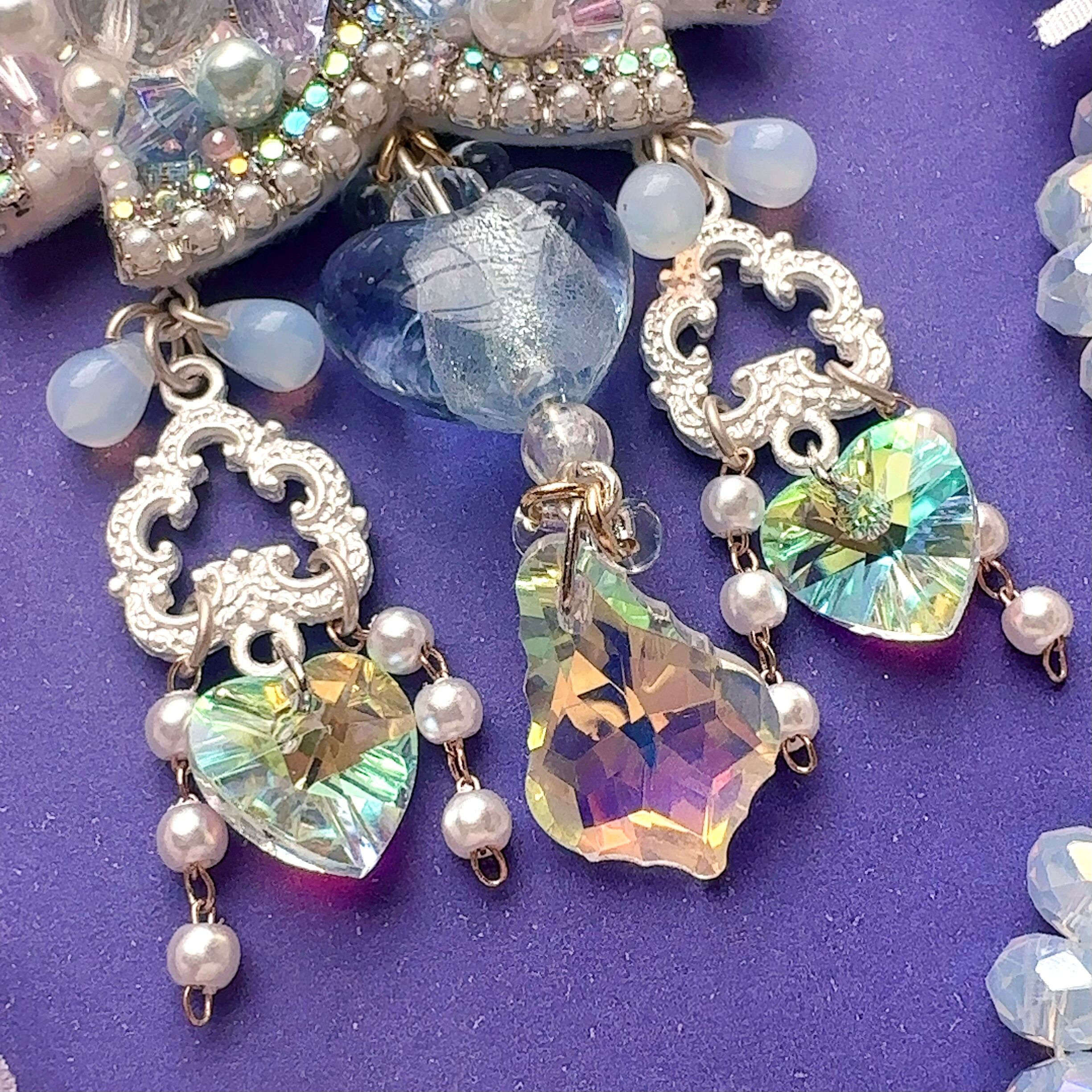 ビーズ刺繍のブローチ・ネックレス・バッグチャームの3wayです。