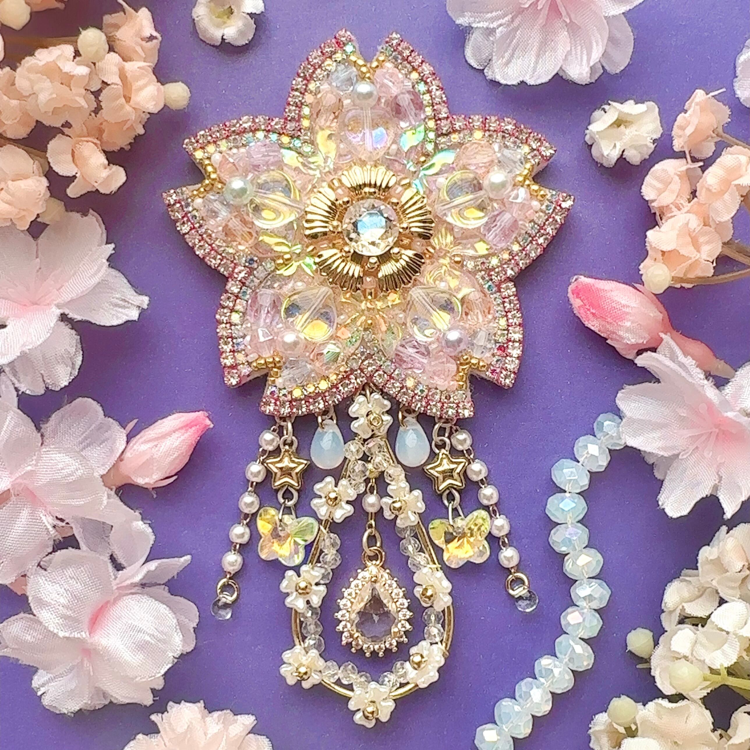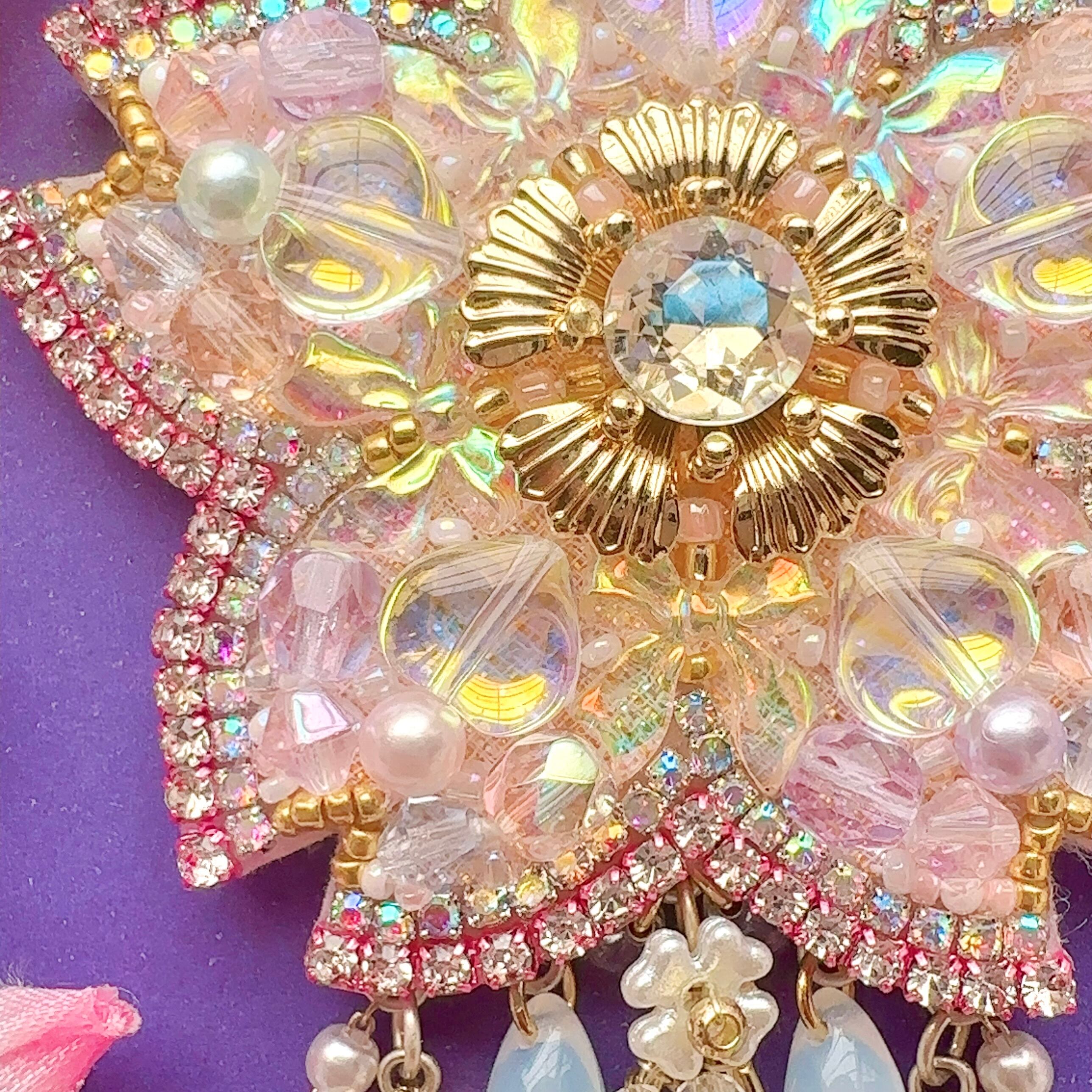 ビーズ刺繍のブローチ・ネックレス・バッグチャームの3wayです。