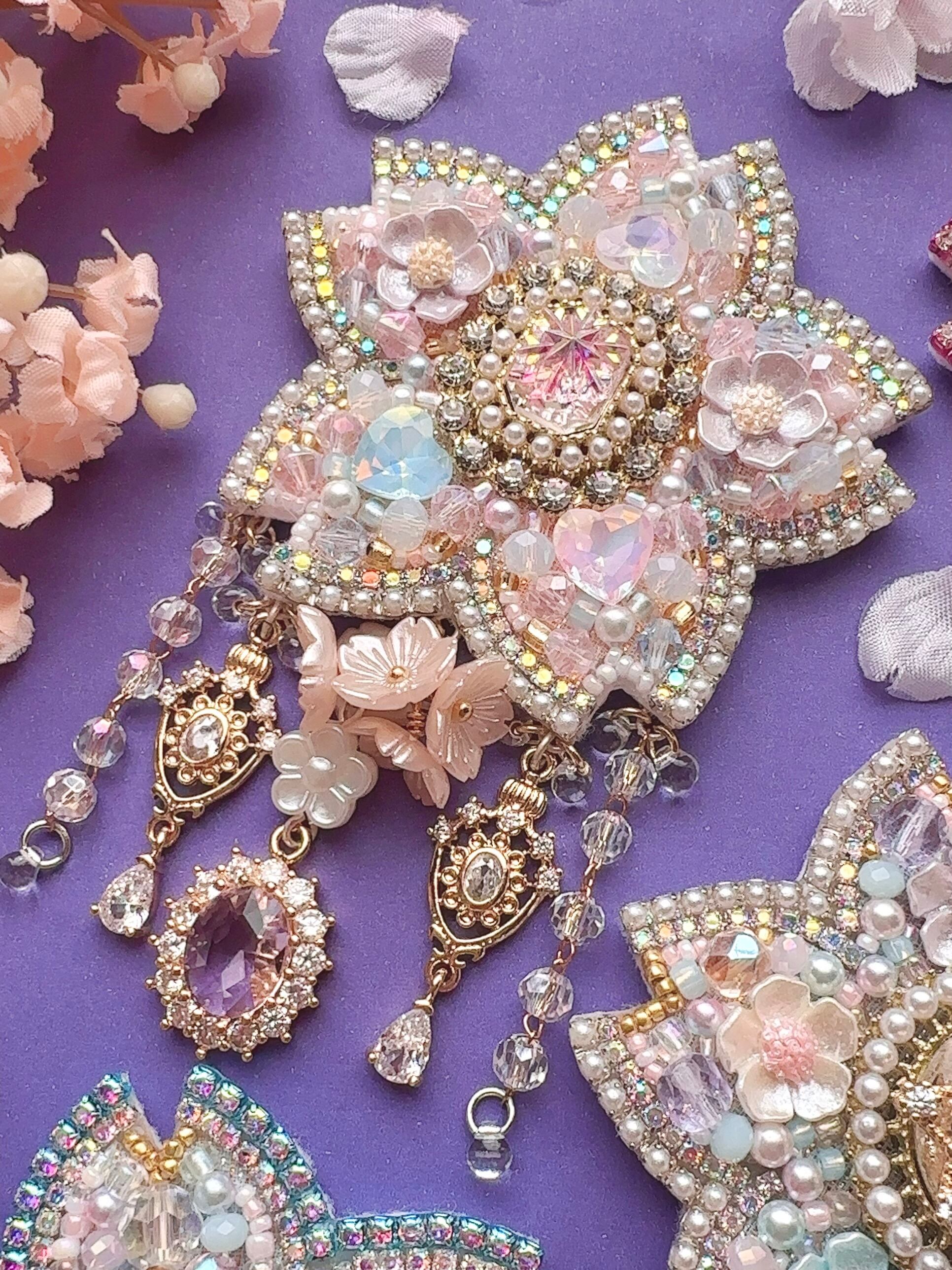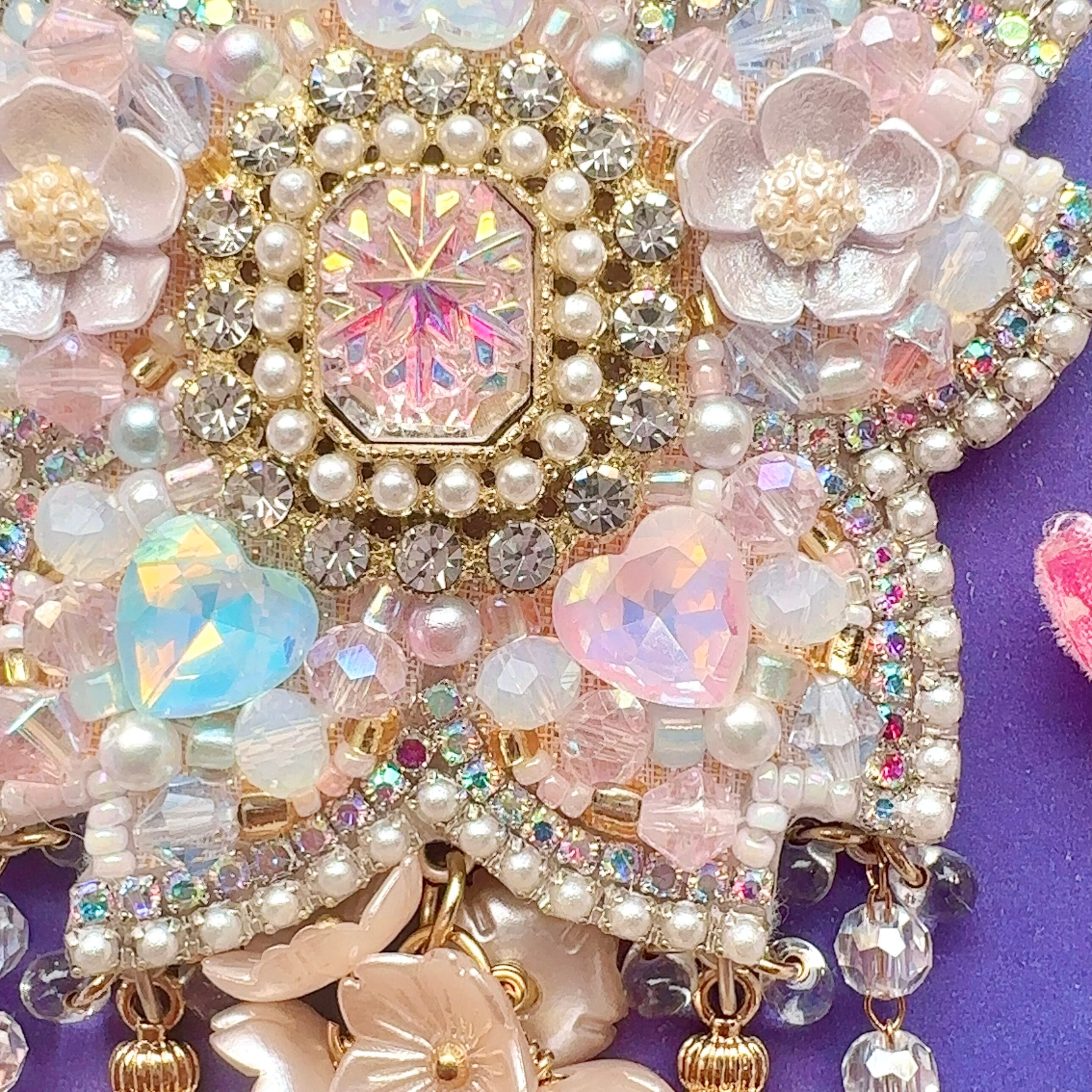ビーズ刺繍のブローチ・ネックレス・バッグチャームの3wayです。