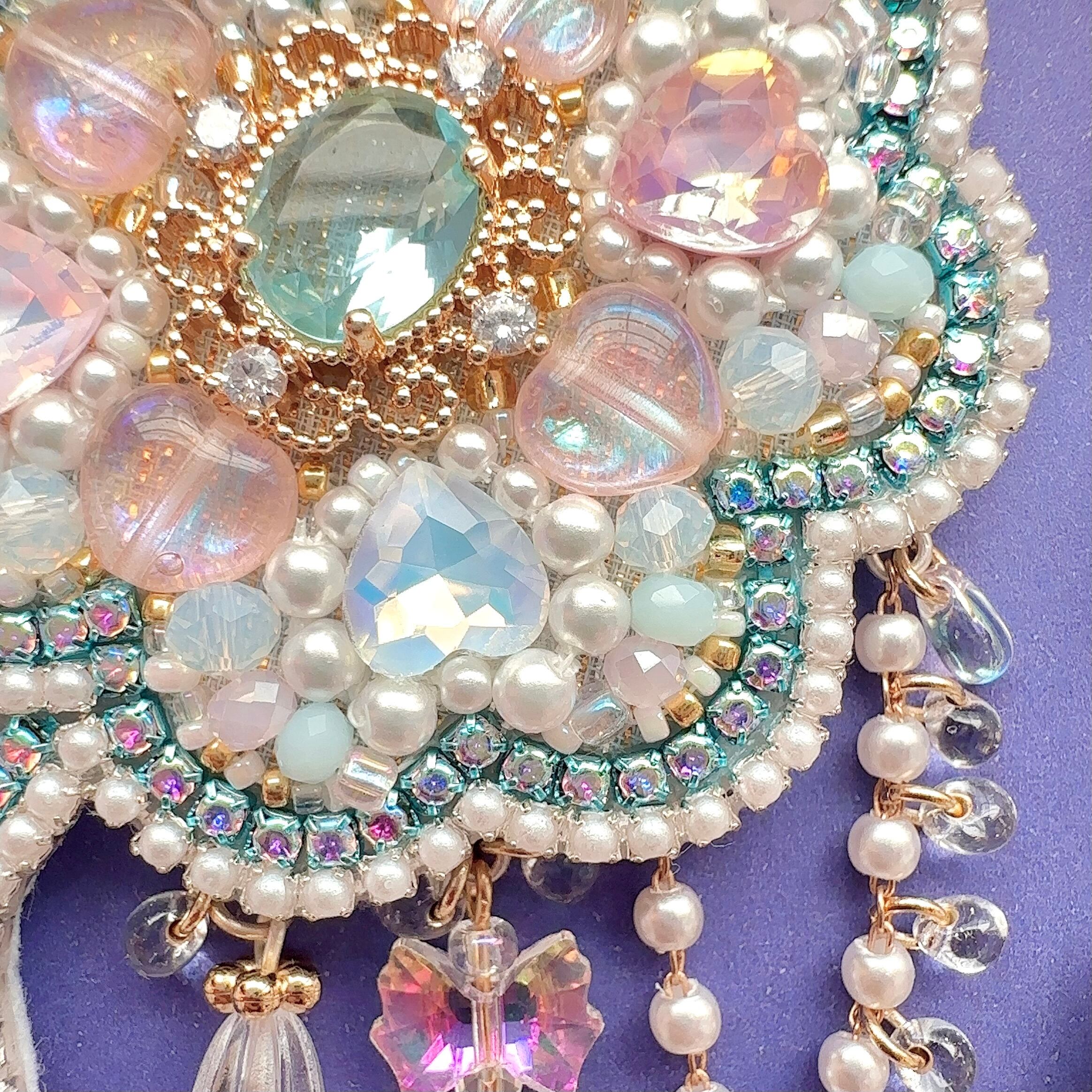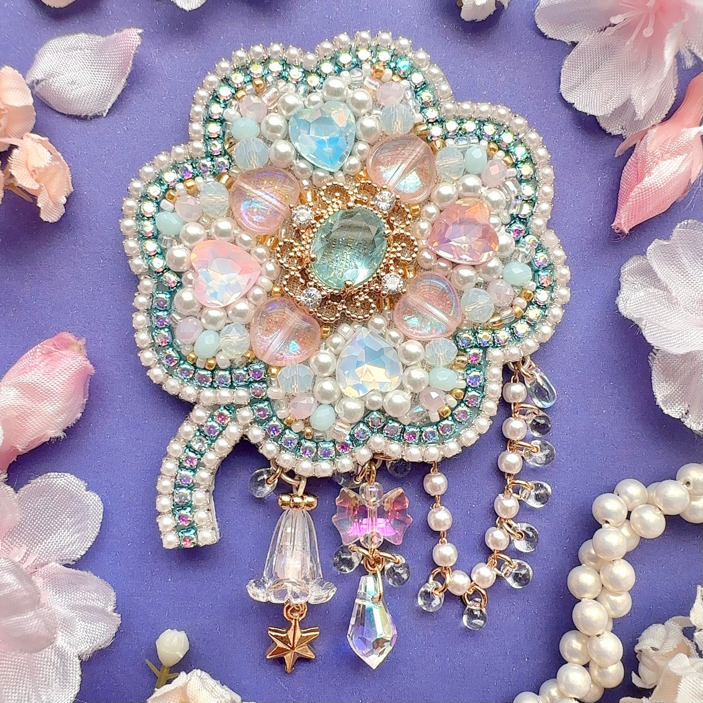 ビーズ刺繍のブローチ・ネックレス・バッグチャームの3wayです。