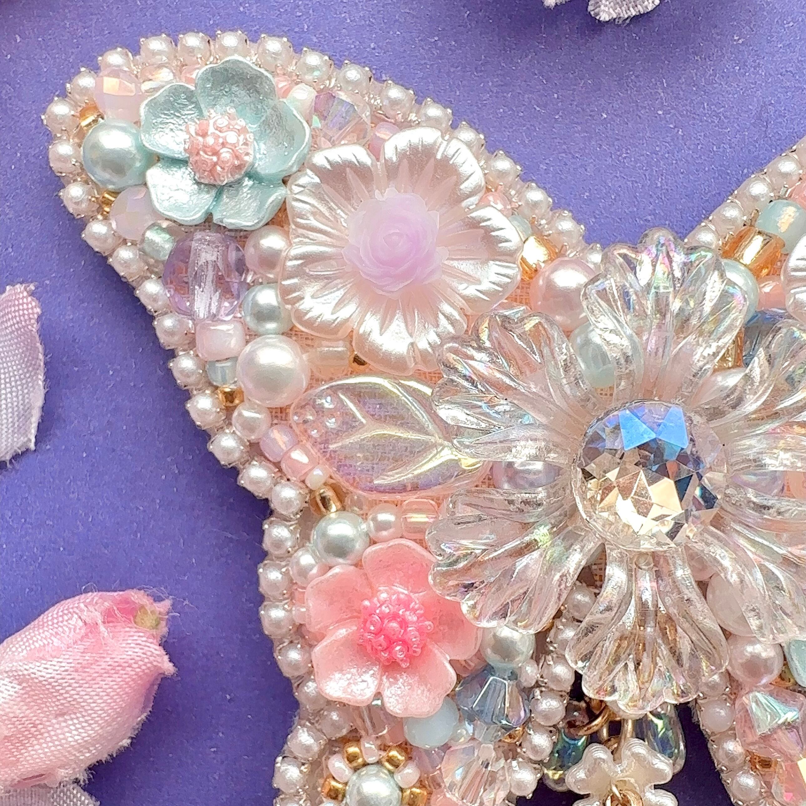 ビーズ刺繍のブローチ・ネックレス・バッグチャームの3wayです。