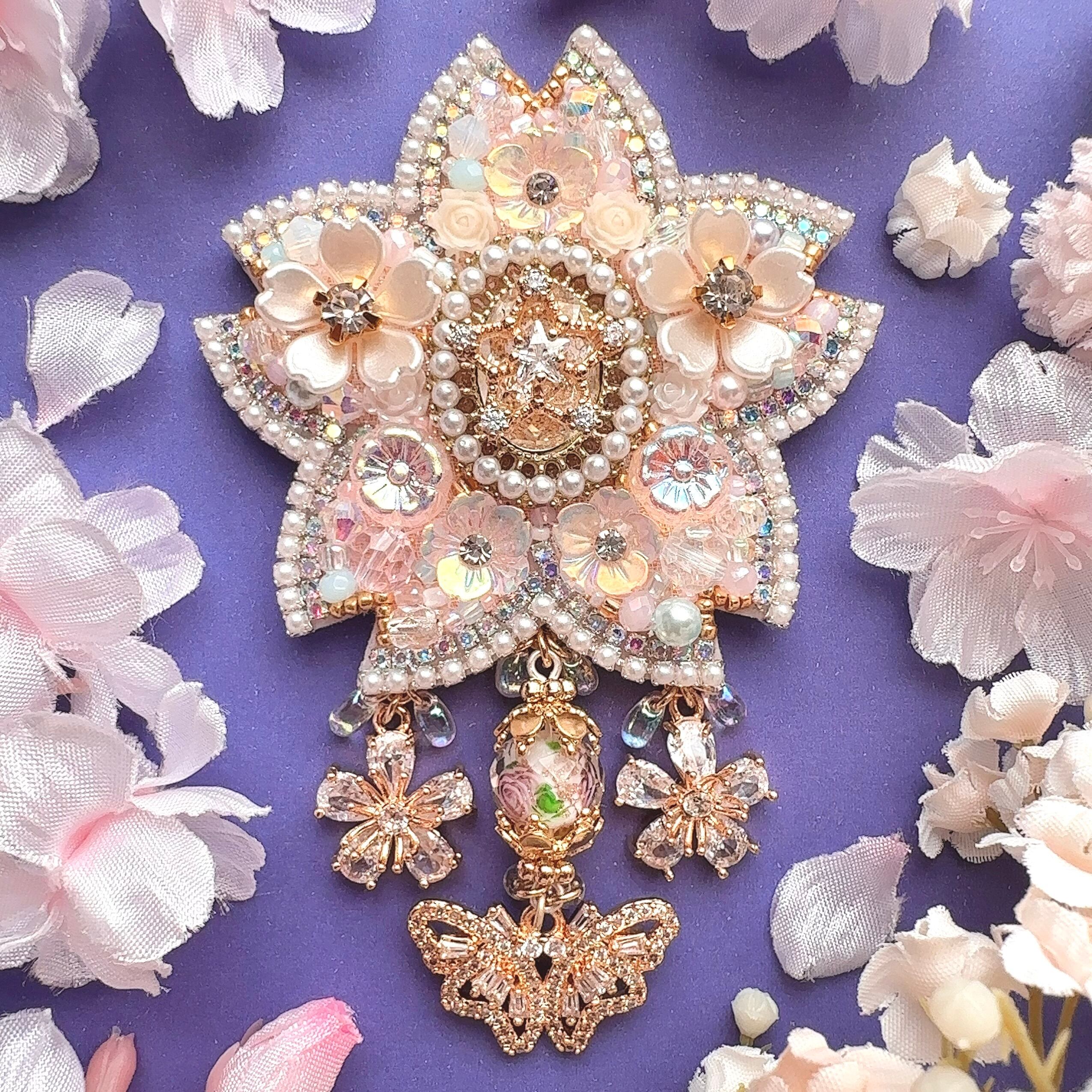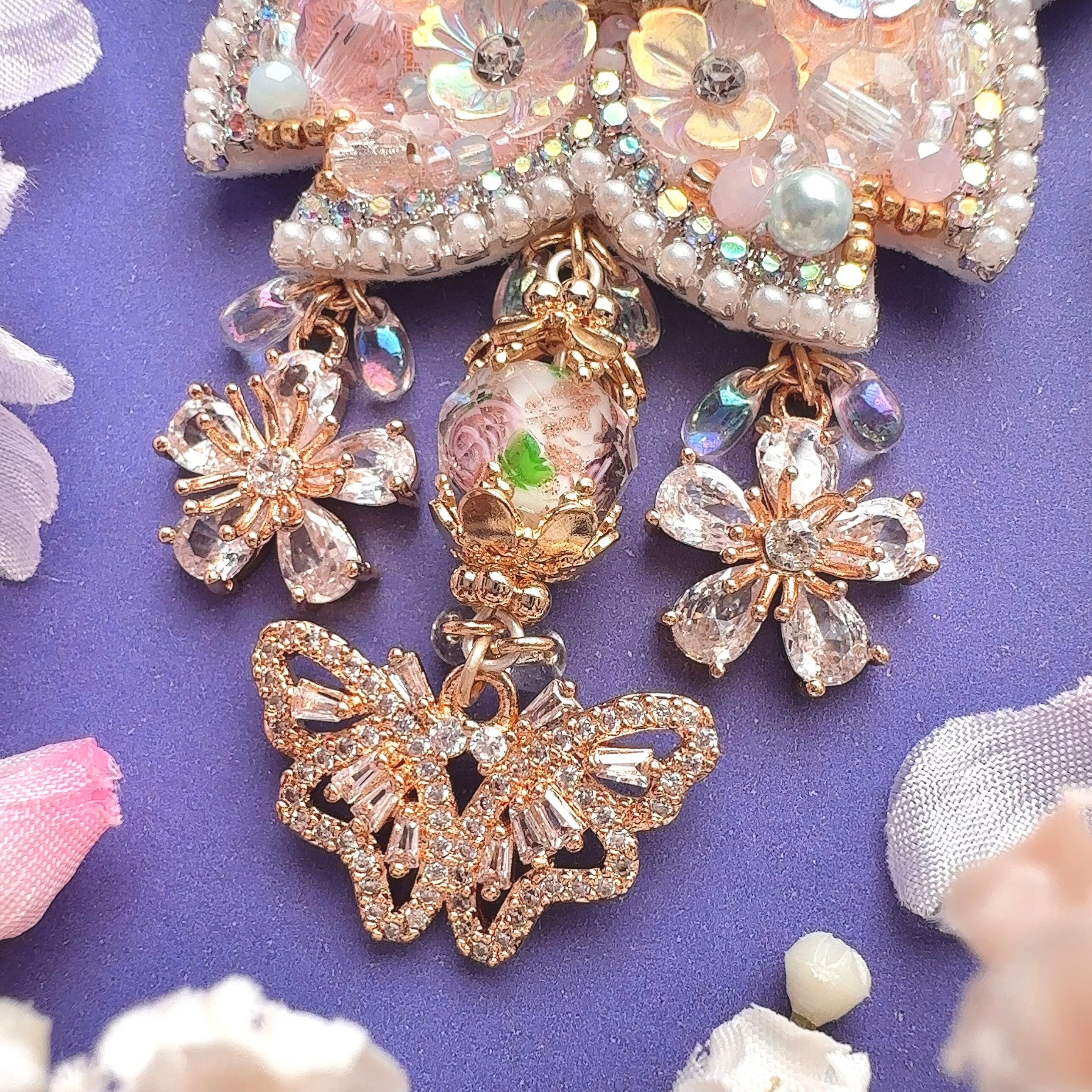 ビーズ刺繍のブローチ・ネックレス・バッグチャームの3wayです。