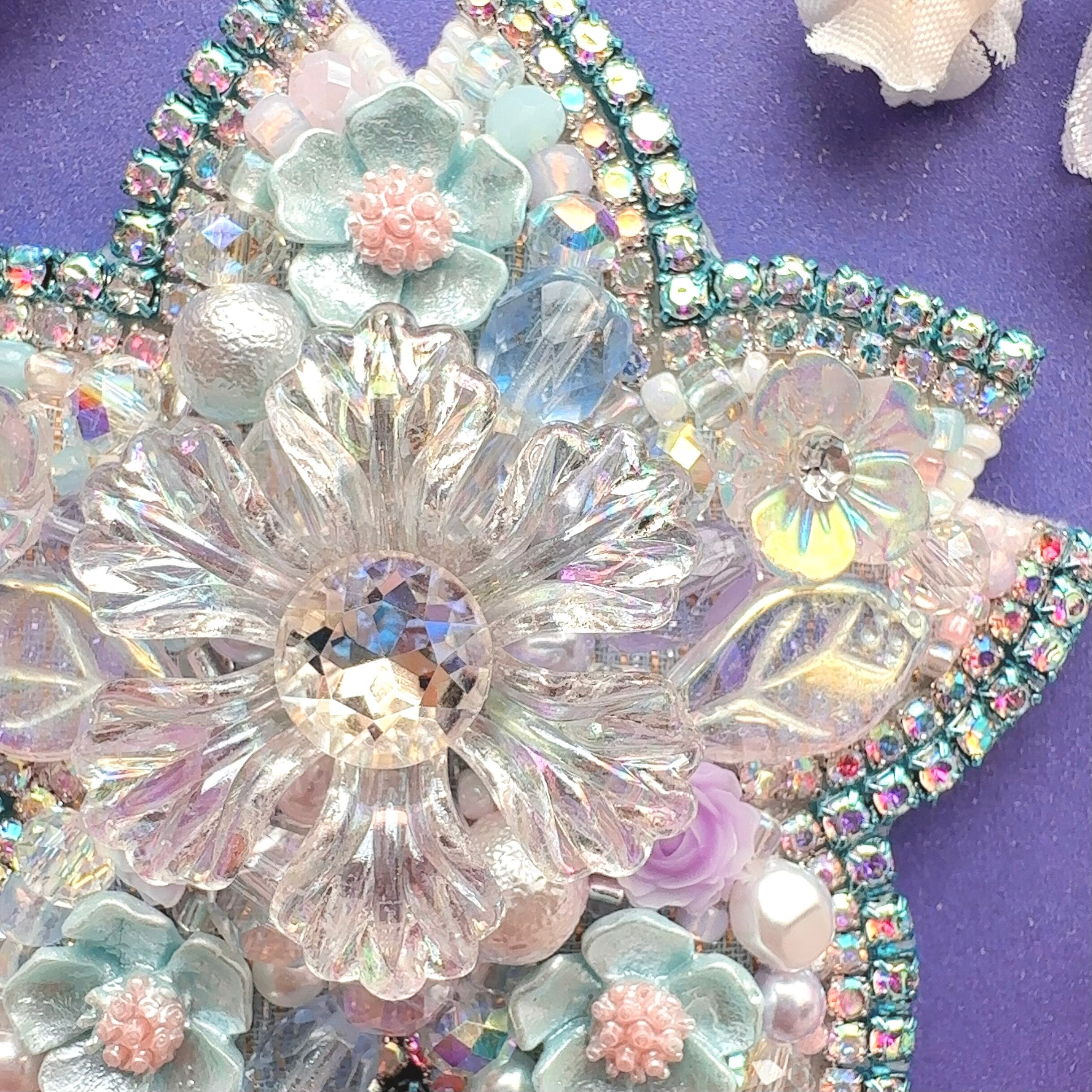ビーズ刺繍のブローチ・ネックレス・バッグチャームの3wayです。